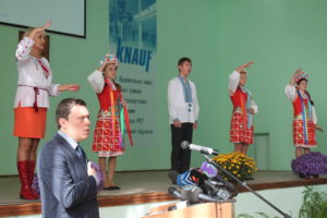 Олександр Старченко, директор з маркетингу і збуту ТОВ «Кнауф Гіпс Київ» звернув увагу присутніх на питанні актуальності та практичних аспектах відкриття експериментально- практичного майданчика з підготовки монтажників легкого каркасно-обшивного будівництва.