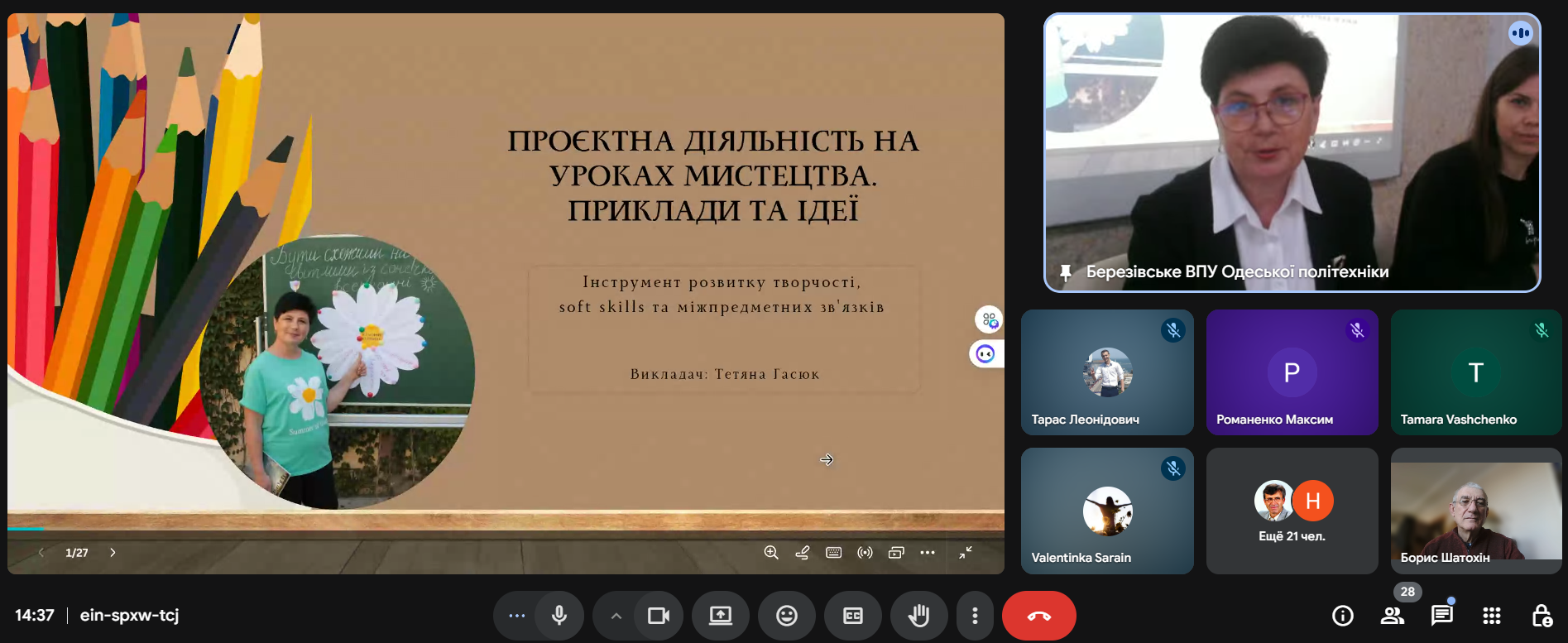 Спікери вебінару, а саме: Шатохін Борис Ілліч, методист НМЦ ПТО в Одеській області, Гасюк Тетяна Миколаївна, викладачка Березівського ВПУ Одеської політехніки, Ващенко Тамара Олександрівна, викладачка ДНЗ «Одеське вище професійне училище морського туристичного сервісу», Салада Анна Сергіївна, викладачка Березівського ВПУ Одеської політехніки, Дмитренко Олена Борисівна, викладачка ВП Об’єднане вище професійно-технічне училище сфери послуг НУ «Одеська юридична академія» поділилися прикладами, інструментами та ідеями, які можуть стати основою для власних проєктів або надихнути на нові педагогічні рішення.