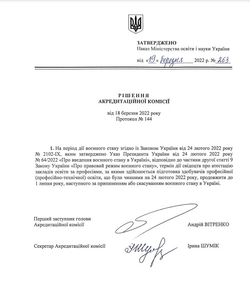 до 1 листопада 2022 року. Лист Міністерства освіти і науки України від 24.08.2022 № 1/9714-22 “Щодо продовження прийому громадян на навчання до закладів професійної (професійно-технічної) освіти у 2022 році”