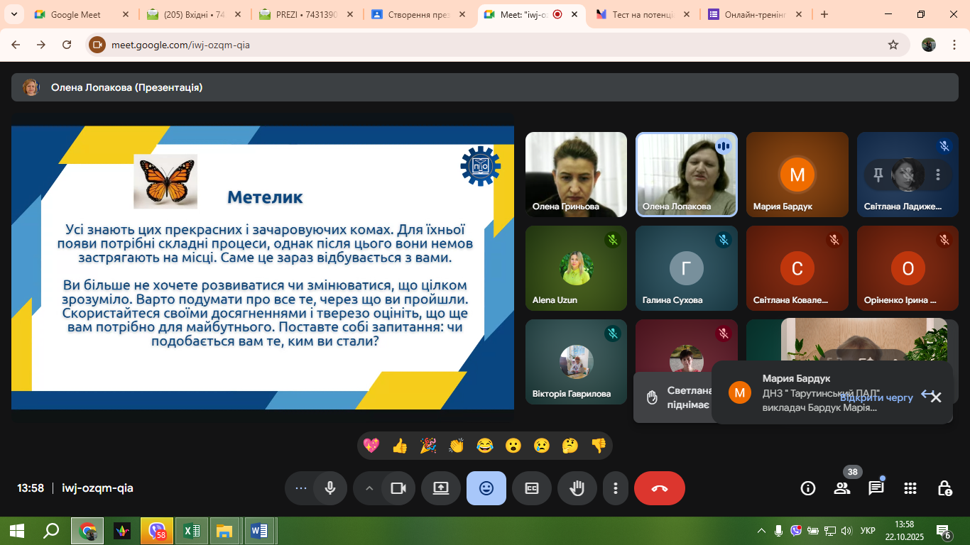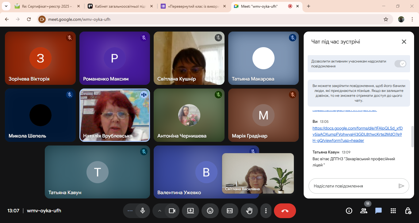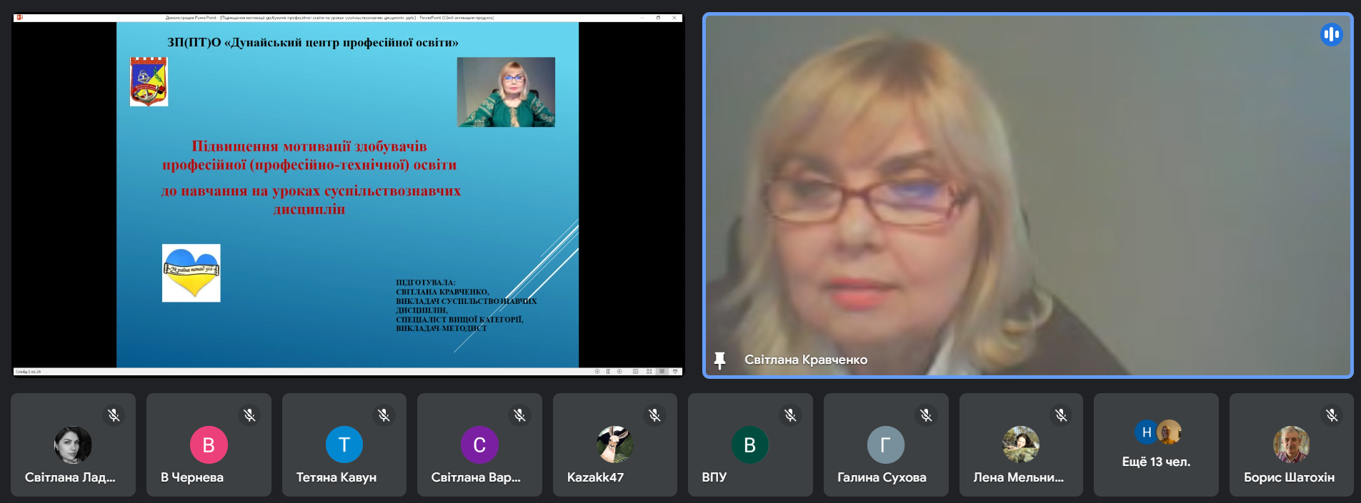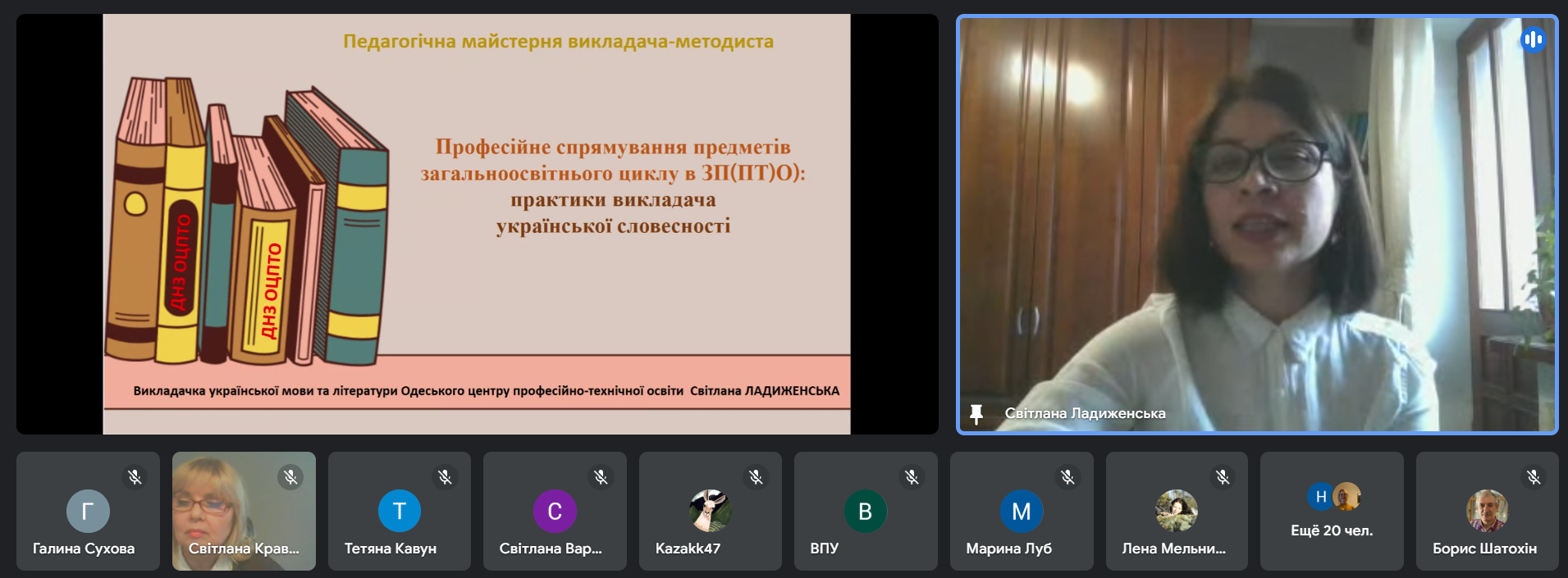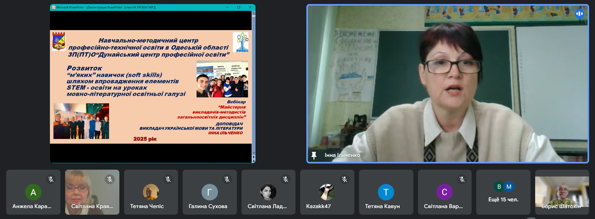 Спікери вебінару, а саме: Шатохін Борис Ілліч, методист НМЦ ПТО в Одеській області, Гасюк Тетяна Миколаївна, викладачка Березівського ВПУ Одеської політехніки, Ващенко Тамара Олександрівна, викладачка ДНЗ «Одеське вище професійне училище морського туристичного сервісу», Салада Анна Сергіївна, викладачка Березівського ВПУ Одеської політехніки, Дмитренко Олена Борисівна, викладачка ВП Об’єднане вище професійно-технічне училище сфери послуг НУ «Одеська юридична академія» поділилися прикладами, інструментами та ідеями, які можуть стати основою для власних проєктів або надихнути на нові педагогічні рішення.