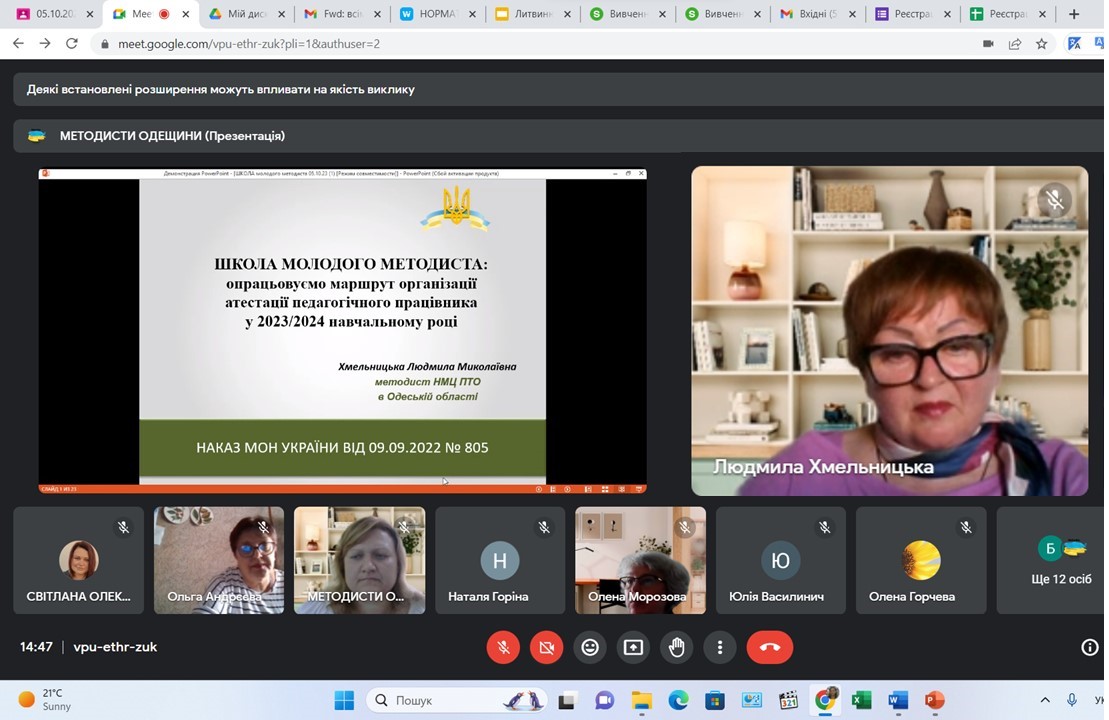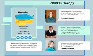 5 жовтня 2023 року відбулося друге онлайн засідання школи новопризначеного методиста за темою «Системний підхід до методичної роботи з педагогічними працівниками закладів професійної (професійно-технічної) світи».