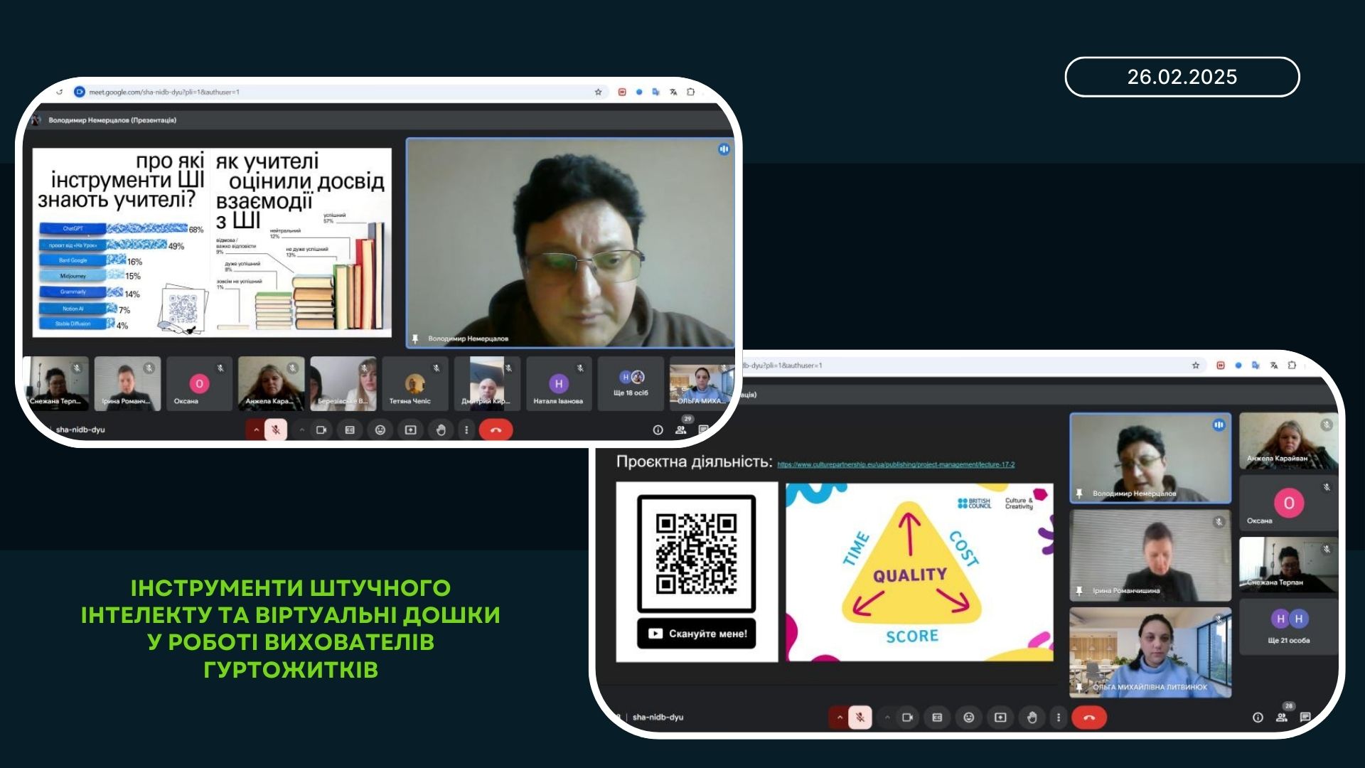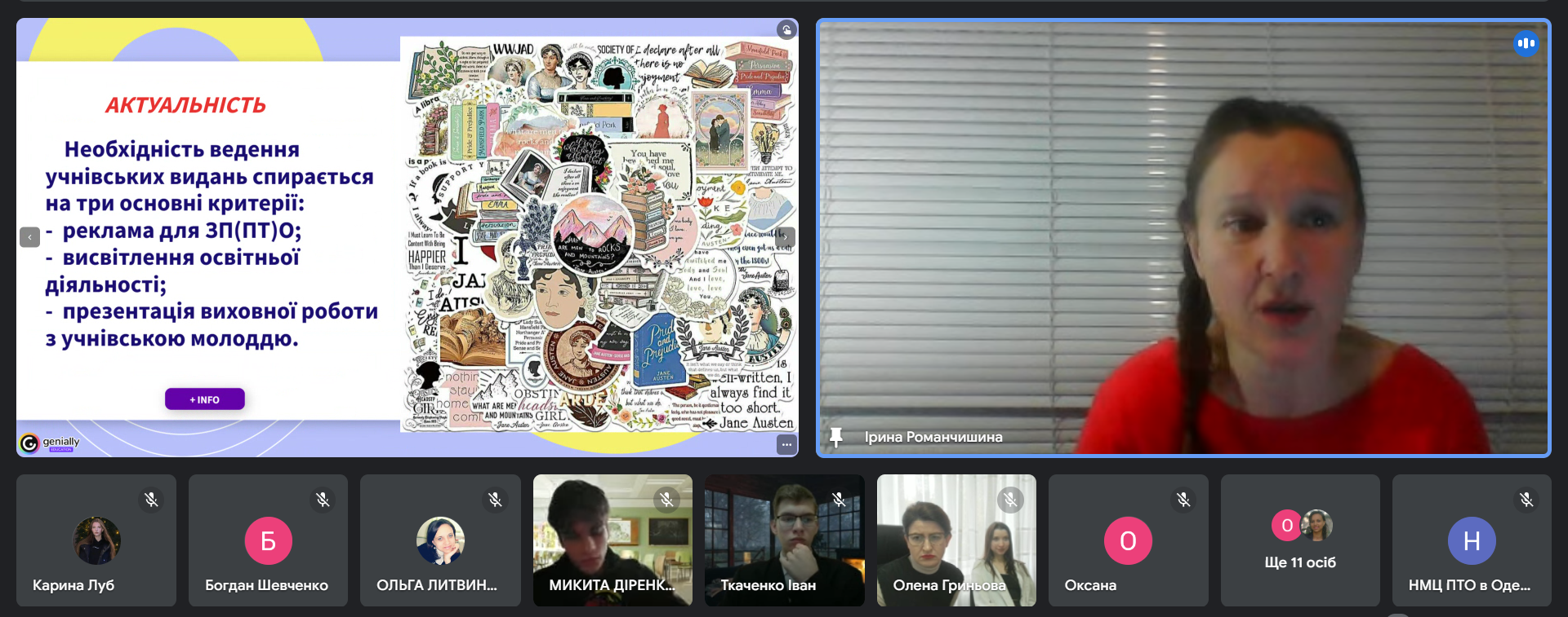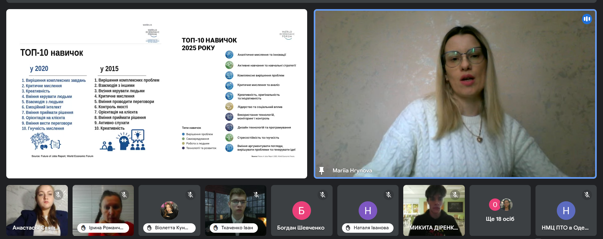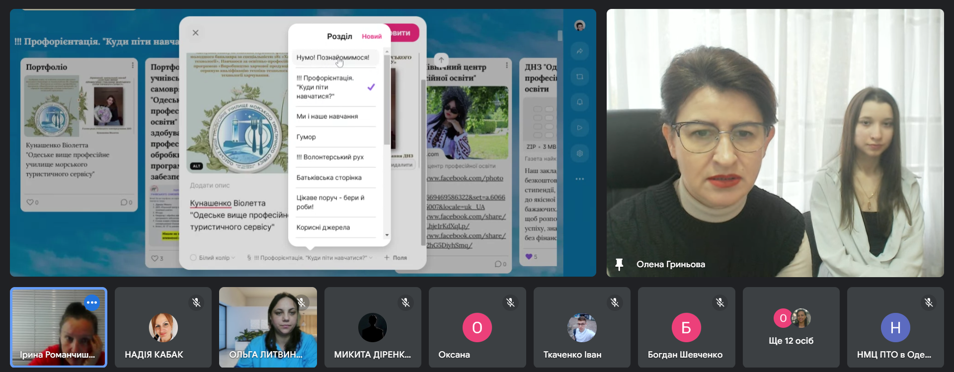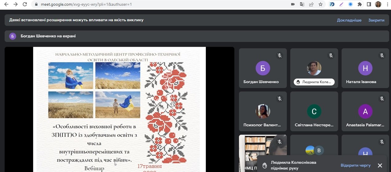 Спікери вебінару, а саме: Шатохін Борис Ілліч, методист НМЦ ПТО в Одеській області, Гасюк Тетяна Миколаївна, викладачка Березівського ВПУ Одеської політехніки, Ващенко Тамара Олександрівна, викладачка ДНЗ «Одеське вище професійне училище морського туристичного сервісу», Салада Анна Сергіївна, викладачка Березівського ВПУ Одеської політехніки, Дмитренко Олена Борисівна, викладачка ВП Об’єднане вище професійно-технічне училище сфери послуг НУ «Одеська юридична академія» поділилися прикладами, інструментами та ідеями, які можуть стати основою для власних проєктів або надихнути на нові педагогічні рішення.