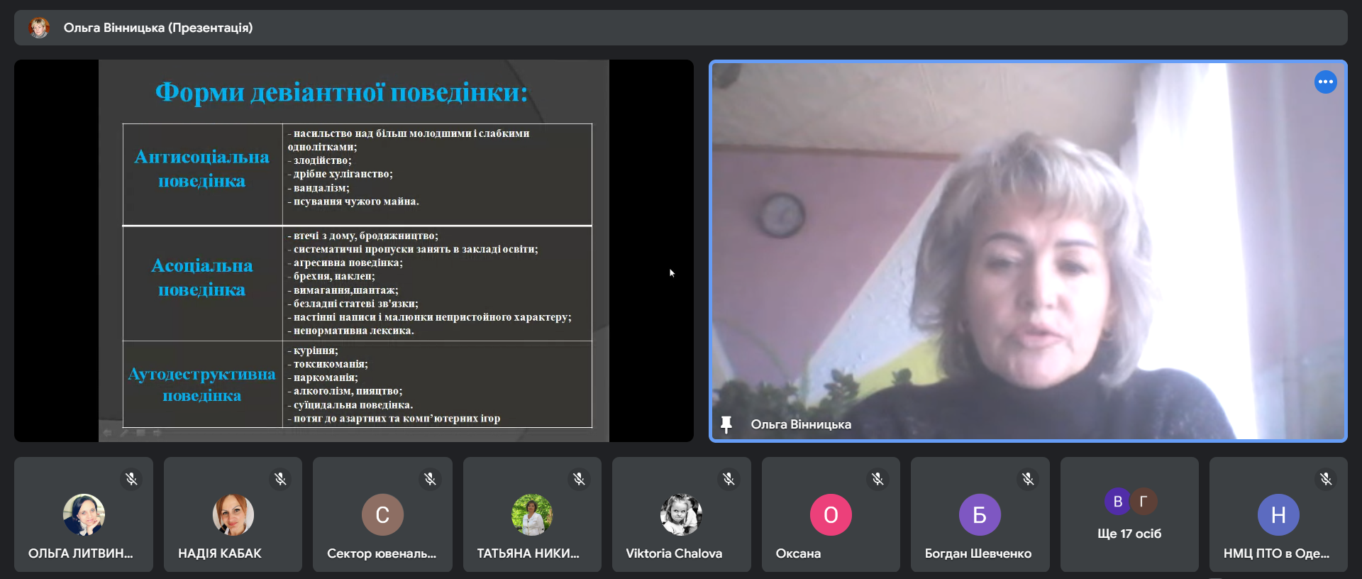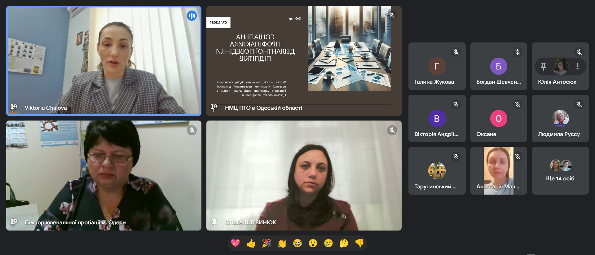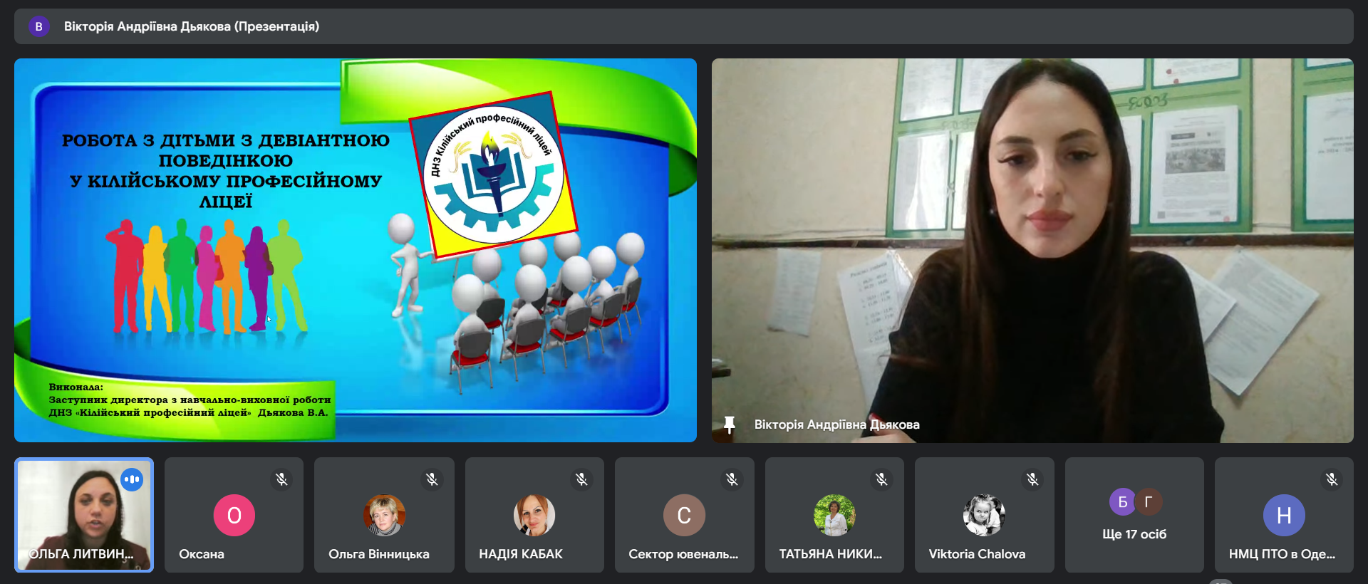 Навчально-методичним центром професійно-технічної освіти в Одеській області 26 травня 2025 року для психологів і соціальних педагогів закладів професійної (професійно – технічної) освіти та всіх бажаючих було проведено обласне онлайн засідання у формі вебінару на тему: «Особливості виховної роботи зі здобувачами категорії ВПО, особами, постраждалими під час війни, дітьми-сиротами, особами з ООП в закладі освіти».