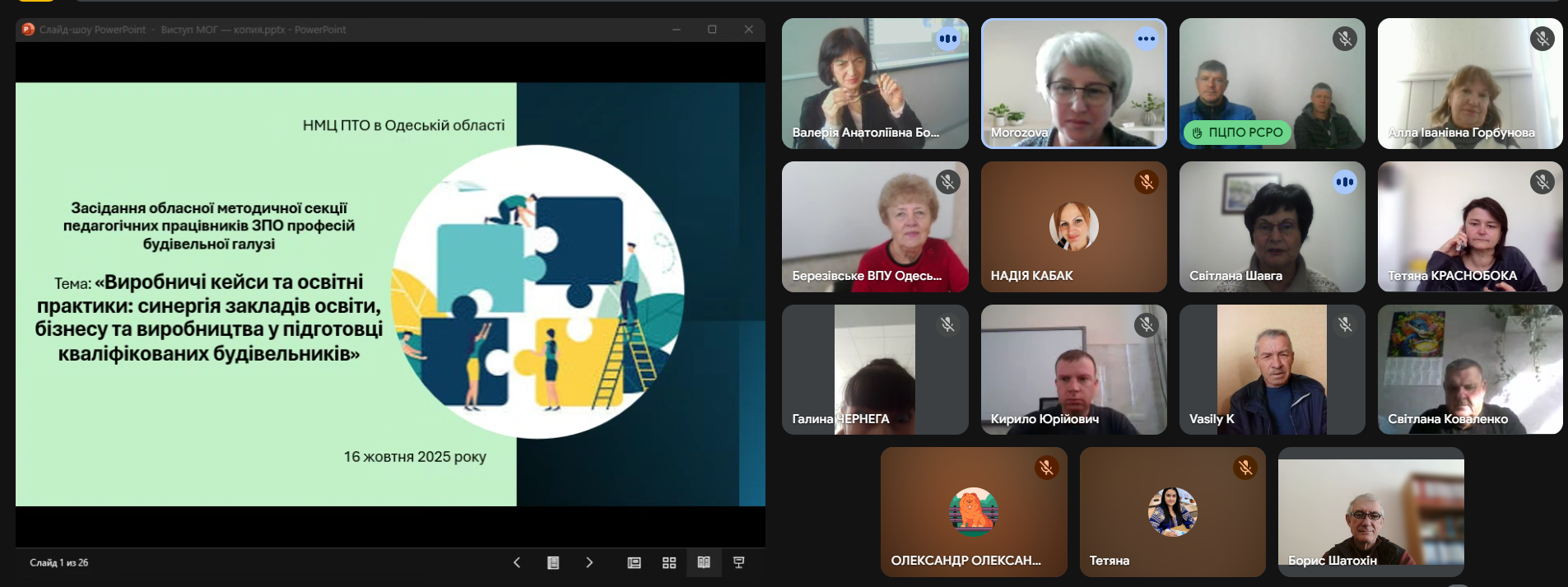28 листопада 2025 року відбулося онлайн-засідання методичної секції педагогічних працівників аграрної галузі закладів професійної освіти Одеської області.