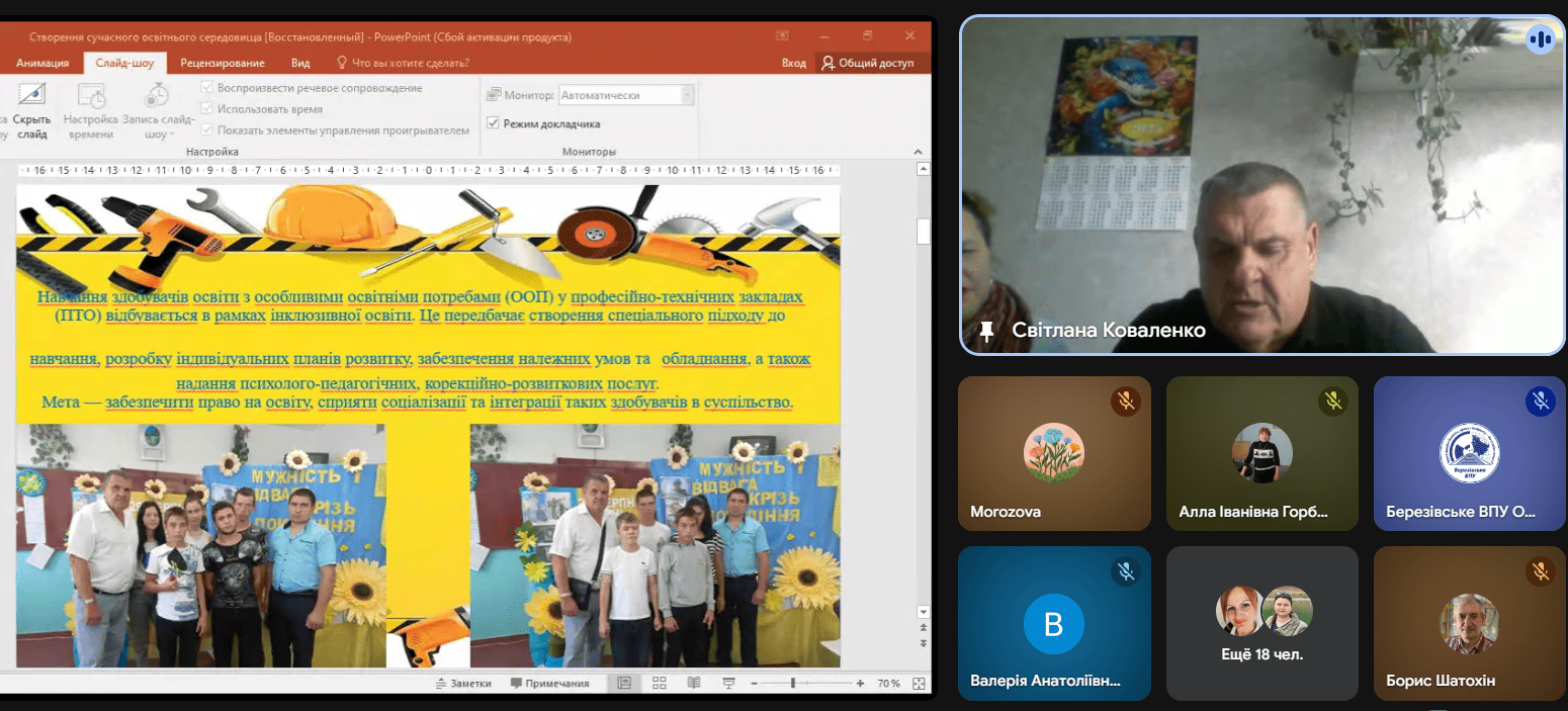 Далі учасники перейшли до теми впливу освітнього середовища на навчальну мотивацію й Олександр Олександрович Давидов, майстер виробничого навчання ДНЗ «Арцизький професійний аграрний ліцей» представив практичний досвід організації навчального середовища, яке сприяє самостійності, відповідальності та внутрішній мотивації студентів. Особливо цінними стали його приклади застосування індивідуальних освітніх траєкторій, цифрових платформ та участі здобувачів у конкурсах і тематичних заходах.