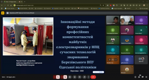 Логічно продовжуючи тему мотивації, секція перейшла до питання розвитку саморозвитку студентів, а Сергій Федорович Гринько, викладач спецпредметів ДНЗ «Татарбунарське ПТАУ» у своїй доповіді виокремив ключові методи підвищення професійної мотивації: дуальна освіта, проєктне навчання, робота з інноваційним обладнанням, інтеграція цифрових технологій. Він підкреслив, що багато стереотипів про аграрну сферу залишаються бар’єрами для молоді, й саме завдання педагогів — руйнувати ці міфи через сучасний зміст освіти.