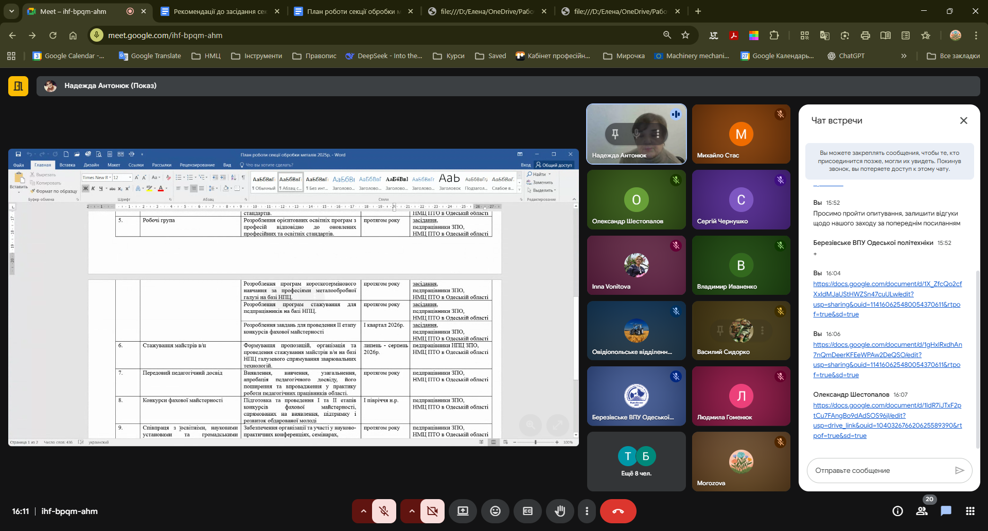 Після завершення виступів учасники перейшли до обговорення проєкту плану роботи методичної секції аграрної галузі на 2026 рік. Пропозиції педагогів були зібрані для подальшого доопрацювання документа.