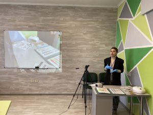 Бадира Оксана Андріївна, майстер виробничого навчання ДНЗ “Одеський професійний ліцей сфери послуг Південноукраїнського національного педагогічного університету ім.К.Д.Ушинського”, голова секції привітала учасників вебінару та розповіла, як співпраця закладу освіти та підприємств легкої промисловості впливають на формування компетентностей майбутніх фахівців та як використовуються новітні технології у цій співпраці.