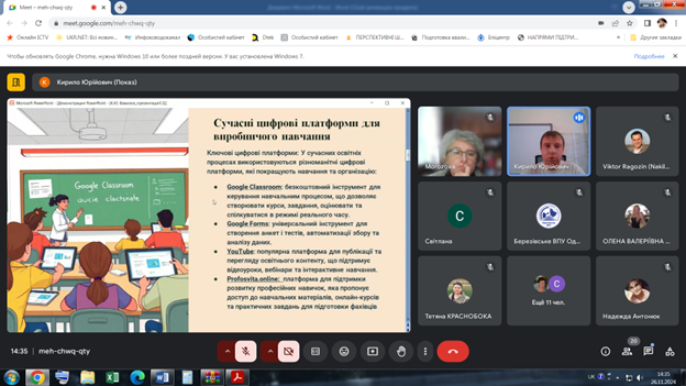 Засідання проводилось у формі онлайн-вебінару на тему: «Компетентнісний підхід при підготовці кваліфікованих робітників легкої промисловості: актуальні питання, традиції, інновації».