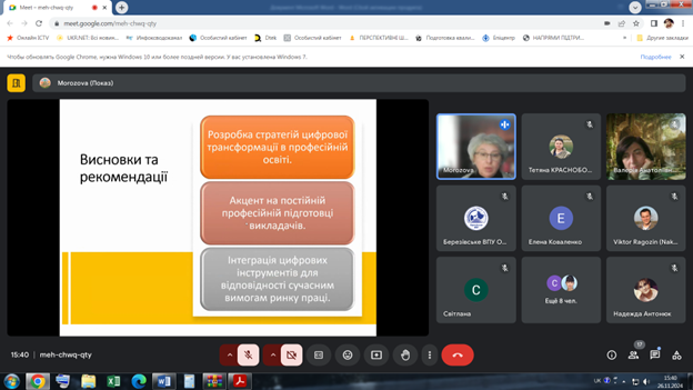 Було розглянуто, як інтегрувати перевірені часом методи навчання з інноваційними підходами. Обговорювалися питання збереження фундаментальних знань, що є основою для будь-якої професійної діяльності, водночас впроваджуючи сучасні педагогічні технології, цифрові інструменти.
