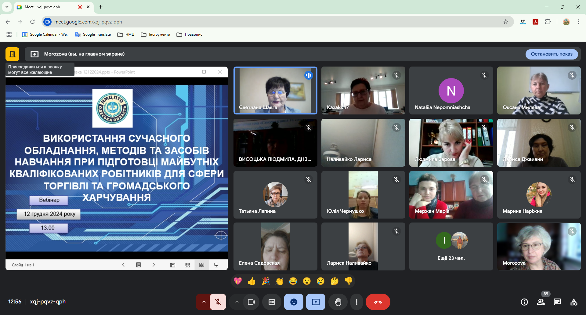 Відповідно до плану роботи Навчально-методичного центру професійно-технічної освіти в Одеській області, 23 грудня 2024 року відбулося засідання методичної секції педагогічних працівників ЗП(ПТ)О професій аграрної галузі у форматі вебінару. Тема вебінару: «Формування професійних компетентностей шляхом використання сучасних виробничих технологій в аграрному господарстві».