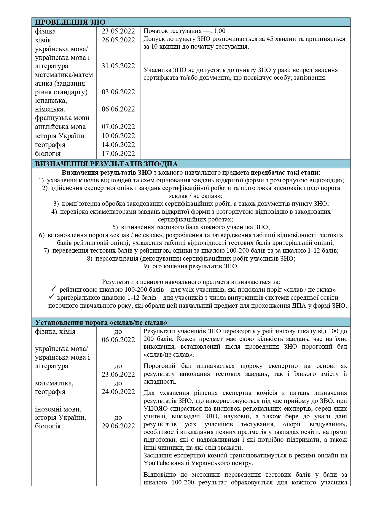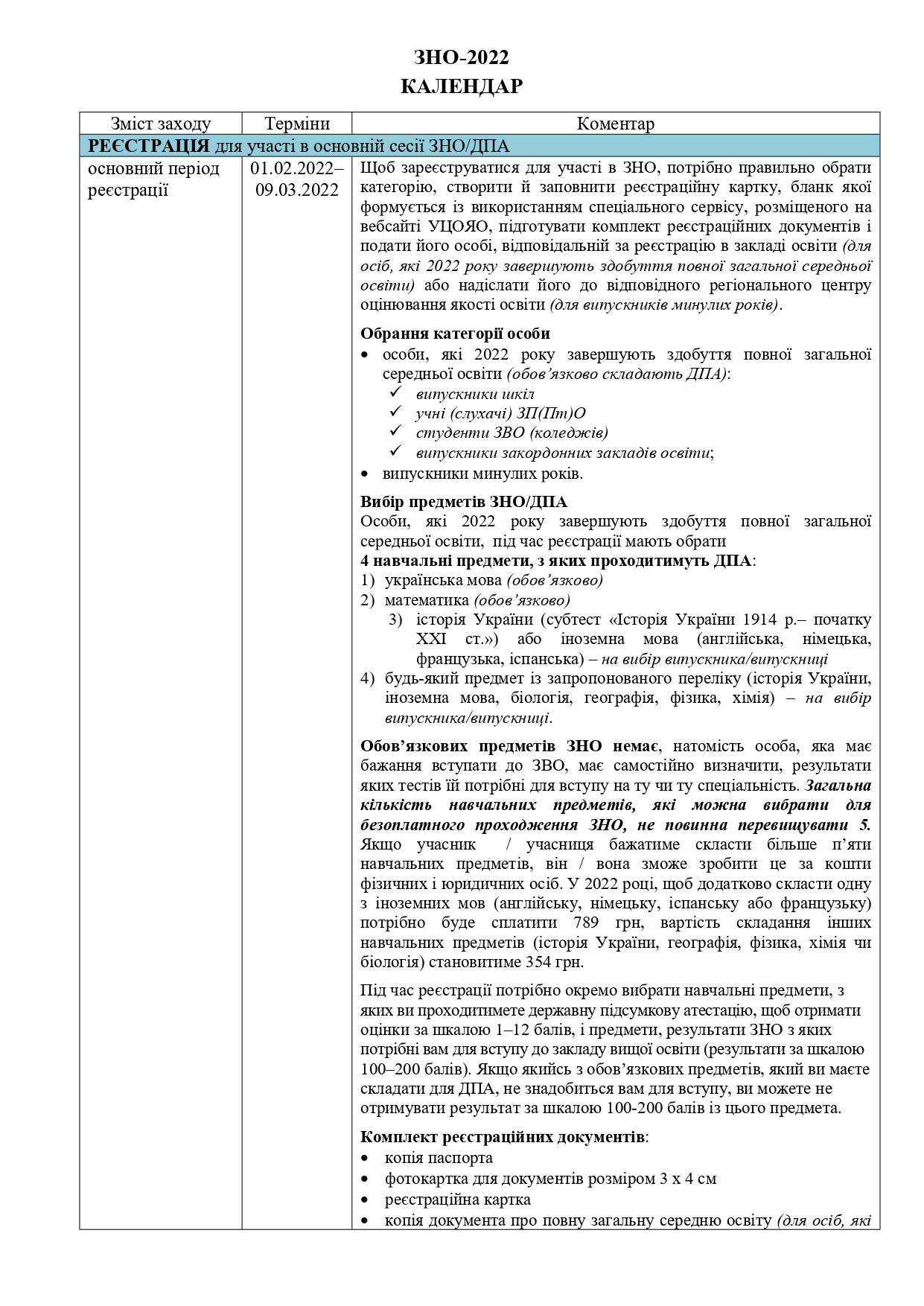 Лист Директорату професійної освіти Міністерства освіти і науки України №5/82-22 від 06.02.2022 “Про окремі аспекти проведення зовнішнього незалежного оцінювання у 2022 році”.