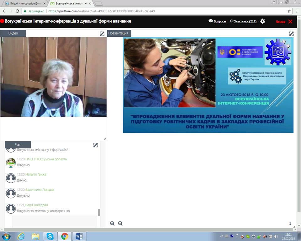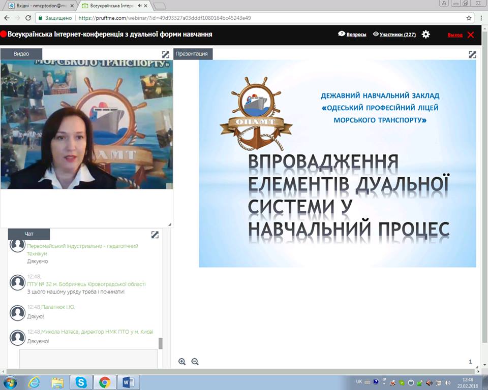 23 лютого 2018 року при підтримці Департаменту професійної освіти Міністерства освіти і науки України, Інституту професійної освіти НАПН України відбулася Всеукраїнська Інтернет-конференція «Впровадження елементів дуальної форми навчання у підготовку робітничих кадрів в закладах професійної освіти України».