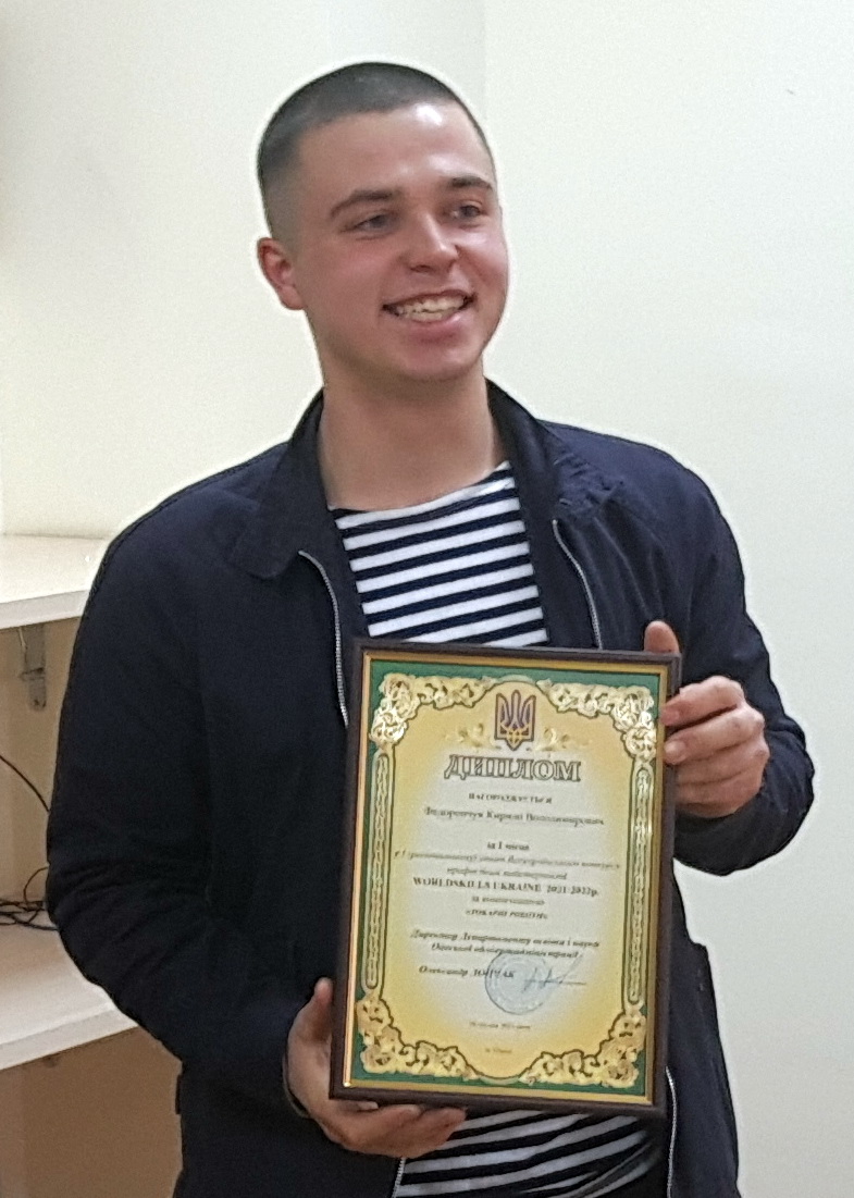 І місце – Федорончук Кирило Володимирович, здобувач освіти ДНЗ «Одеський центр професійно-технічної освіти ДСЗ»;