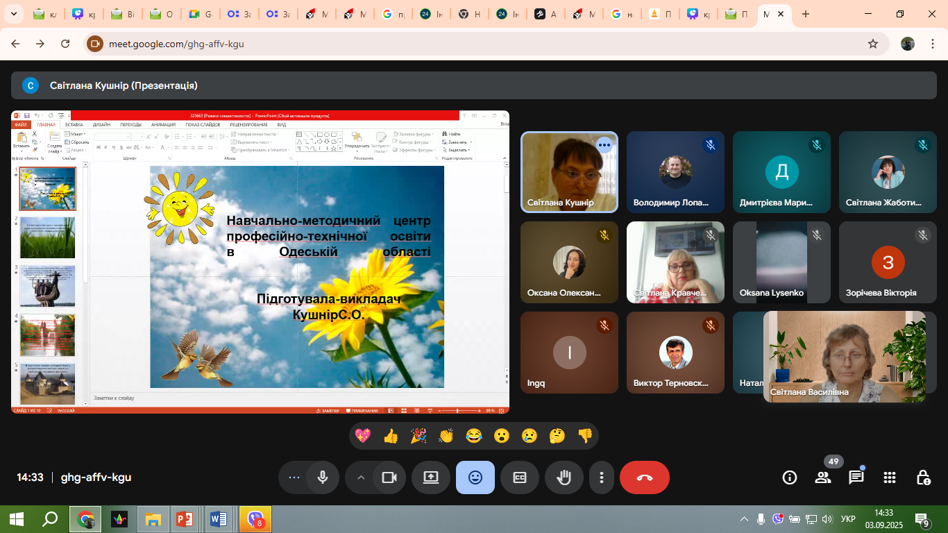 В підведенні підсумку роботи Соколюк С. сказала, що отримана інформація та обговорені підходи надихнуть на подальші експерименти та впровадження сучасних освітніх технологій у педагогічній діяльності. Побажала успіхів на вчительських теренах, терпіння і безмежної мудрості. Стати для здобувачів освіти не просто майстром, а й порадником, підтримкою, прикладом і просто другом! Побажала мирного неба і скорішої Перемоги. Зберігати спокій. Вірити в ЗСУ. Разом до Перемоги.