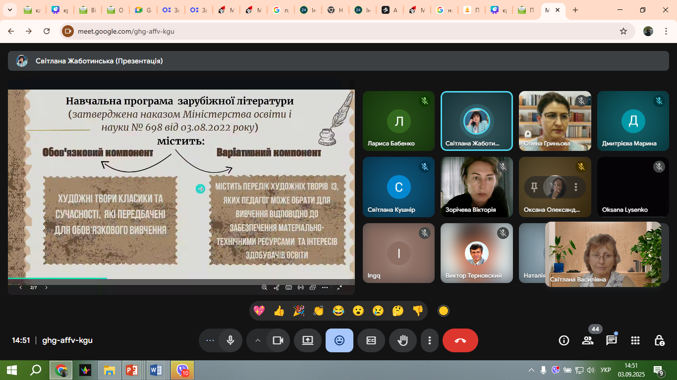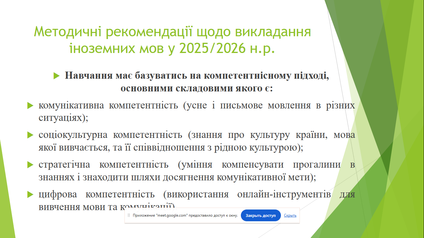 Визначення спільного бачення: щодо впровадження рекомендацій у навчальний процес. Ключові питання для обговорення: Актуалізація змісту навчальних програм з урахуванням оновлених рекомендацій. Моніторинг ефективності викладання та оцінювання результатів навчання. Використання сучасних технологій та інноваційних методик у навчанні.( Гриньова О. голова обласної методичної секції викладачів словесників).