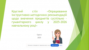 3 вересня 2025 року згідно з планом роботи Навчально-методичний центр професійно-технічної освіти в Одеській області провів круглий стіл для голів методичних секцій предметів загальноосвітньої підготовки закладів професійної (професійно-технічної) освіти. Захід присвячений обговоренню та опрацюванню інструктивно-методичних рекомендацій на 2025-2026 навчальний рік для предметів суспільно-гуманітарного циклу.