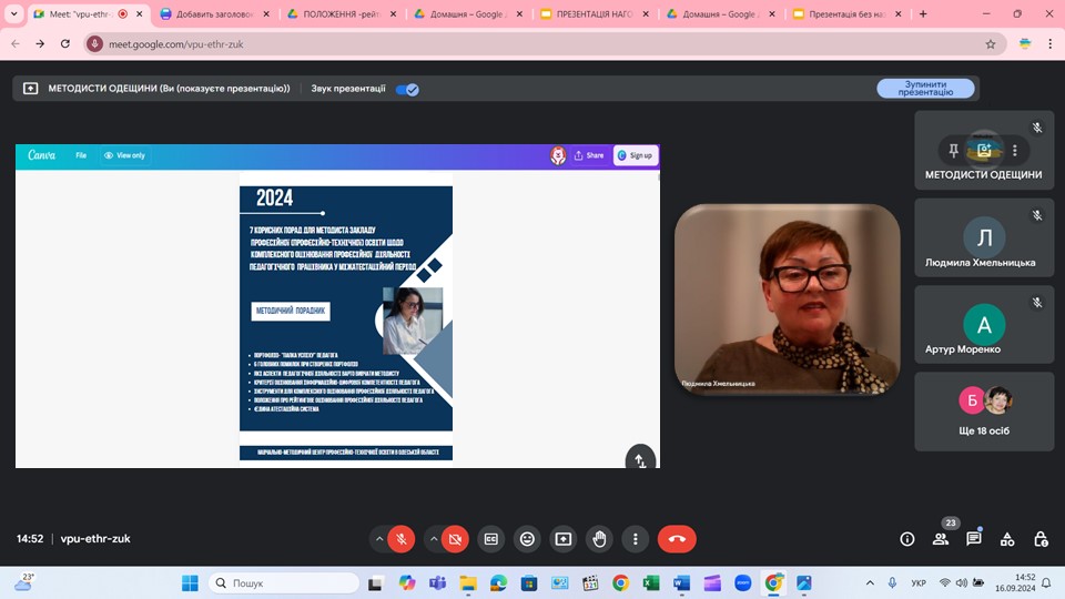 Учасники онлайн-заходу звернули увагу на чітке планування роботи та шляхи удосконалення сучасних інструментів, форм і методів роботи із здобувачами освіти, особливо в умовах змішаного (дистанційного) навчання; оновлення комплексно-методичного забезпечення предметів; запровадження комп`ютерних ІТ-технологій в освіті; використання навчально-методичного забезпечення Інформаційно-методичного порталу Навчально-методичного центру професійно-технічної освіти в Одеській області.