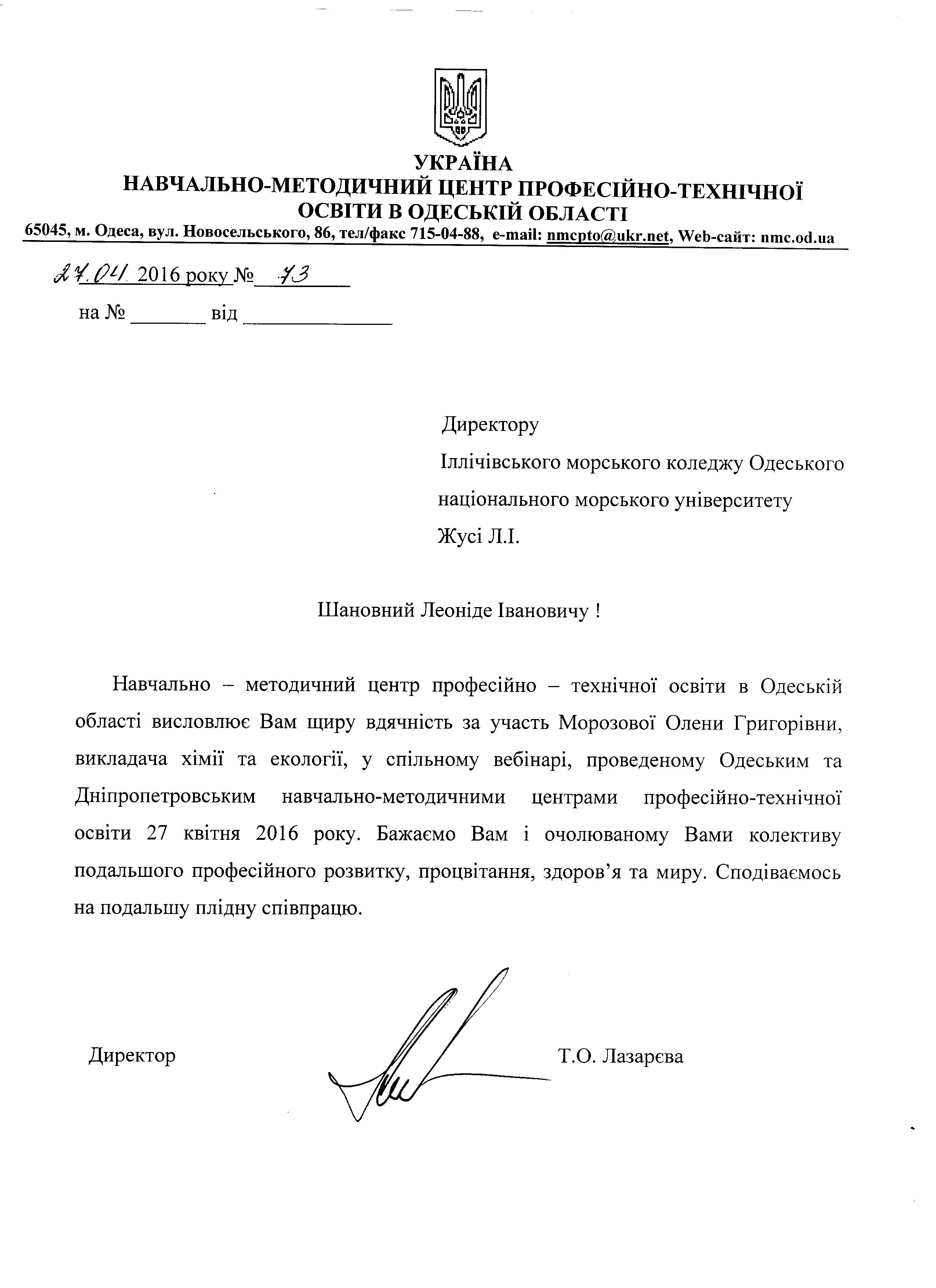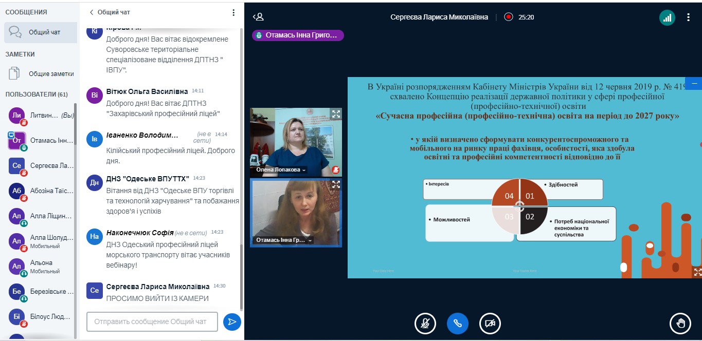 Директор Навчально-методичного центру професійно-технічної освіти в Одеській області Лазарєва Тетяна Олександрівна зазначила: «В умовах стрімкого розвитку економіки, вимог роботодавців до випускників ЗП(ПТ)О перед закладами професійної освіти постає завдання не лише сформувати конкретні професійні компетенції (дати набір професійних знань, умінь і навичок), але й розвинути навички, які допоможуть у пошуку роботи та успішному працевлаштуванні».