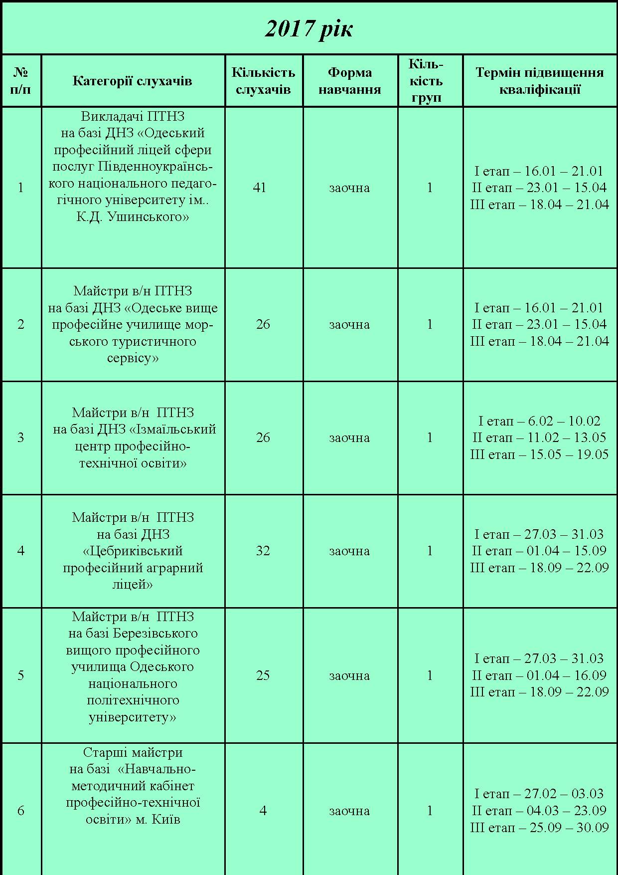 Навчально-методичний центр професійно-технічної освіти в Одеській області доводить до відома план-графік підвищення кваліфікації педагогічних працівників закладів ПТО за кошти державного бюджету