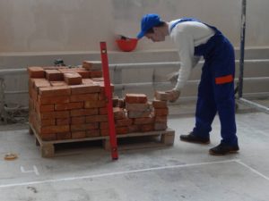Практичний тур складався з виконання цегляної кладки П-подібної конструкції за однорядною системою перев’язки, товщиною в 1,5 цеглини, з вертикальними обмеженнями.