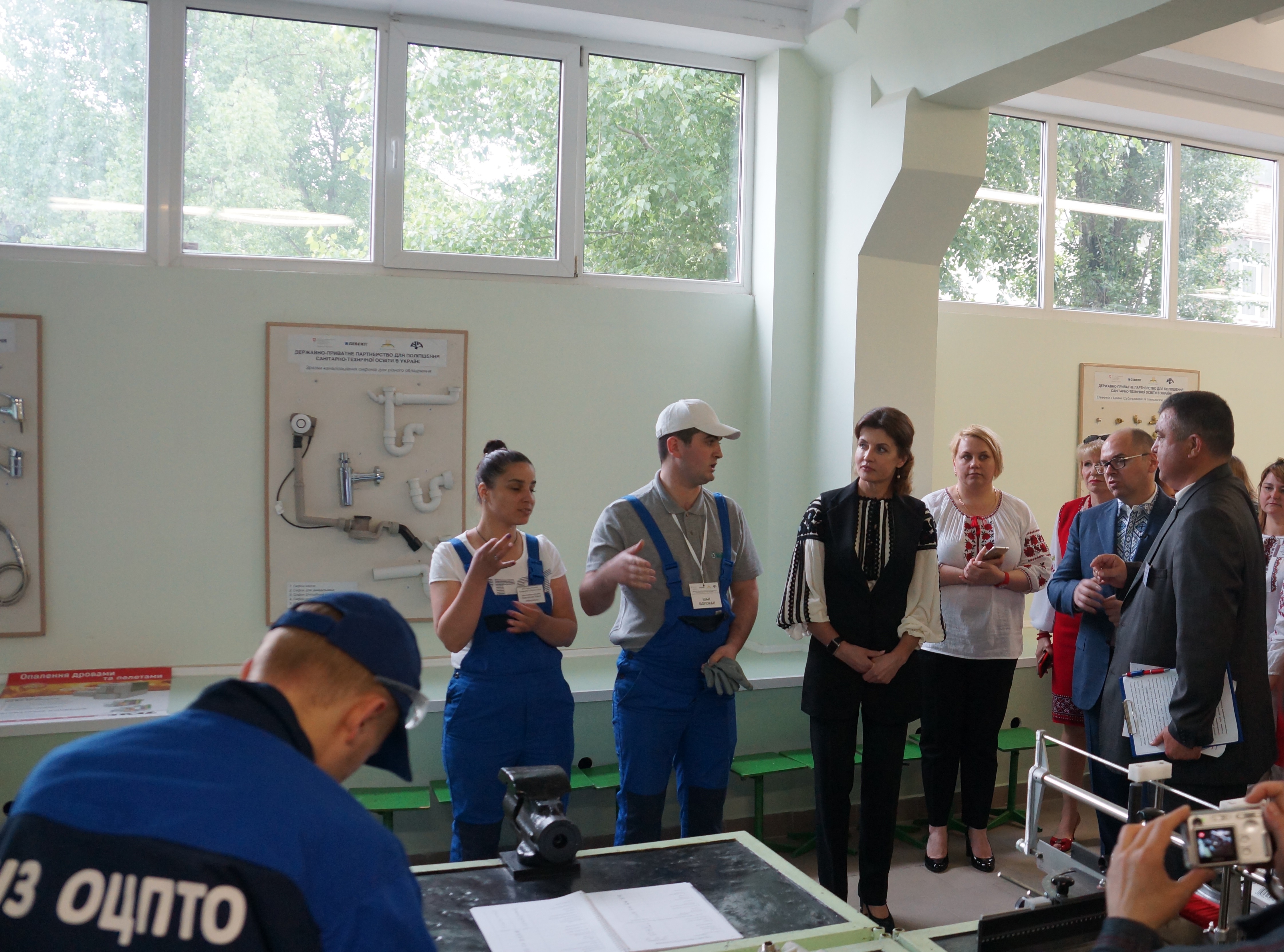У ході візиту Марина Порошенко разом з головою Одеської обласної державної адміністрації завітала до Державного навчального закладу «Одеський центр професійно-технічної освіти», в якому починаючи з 2006 року навчаються учні з порушеннями слуху.