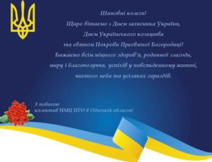 Колектив НМЦ ПТО В Одеській області щиро вітає зі святами – Днем захисника України, Днем Українського козацтва та святом Покрови Пресвятої Богородиці!
