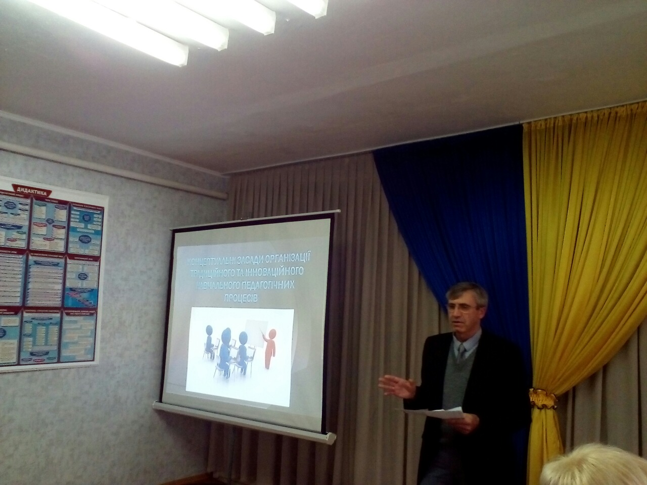 Давиденко Олена Олександрівна, зав. відділом Малої академії наук України Одеського обласного центру позашкільної освіти та виховання, надала практичні поради щодо ознайомлення з роботою Малої академії наук України та залучення до неї талановитих учнів закладів професійної (професійно-технічної) освіти. Про участь учнів ДНЗ “ОВПУТТХ” у Всеукраїнських конкурсах детально розповіла Риба Олена Володимирівна, заступник директора ДНЗ “ОВПУТТХ” з навчально-виробничої роботи. Порівняльну характеристику традиційного та інноваційного навчально-виховного процесу презентував Терновський Віктор Григорович, заступник директора ДНЗ “ОВПУТТХ” з навчально-виховної роботи.
