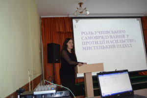 Про роль учнівського самоврядування у протидії насильству розповіла Романчишина Ірина Василівна – методист кабінету організаційно-методичної, кадрової та виховної роботи НМЦ ПТО в Одеській області.