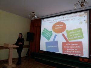 Практичний психолог, КЗВО «Одеська академія неперервної освіти Одеської обласної ради» Заварова Наталія Володимирівна виступила перед присутніми з тренінговим заняттям «Запобігання та протидія булінгу», обговорили різні ситуації та випадки булінгу в освітньому середовищі, присутні отримали поради спеціаліста про запобігання булінгу в гуртожитку.