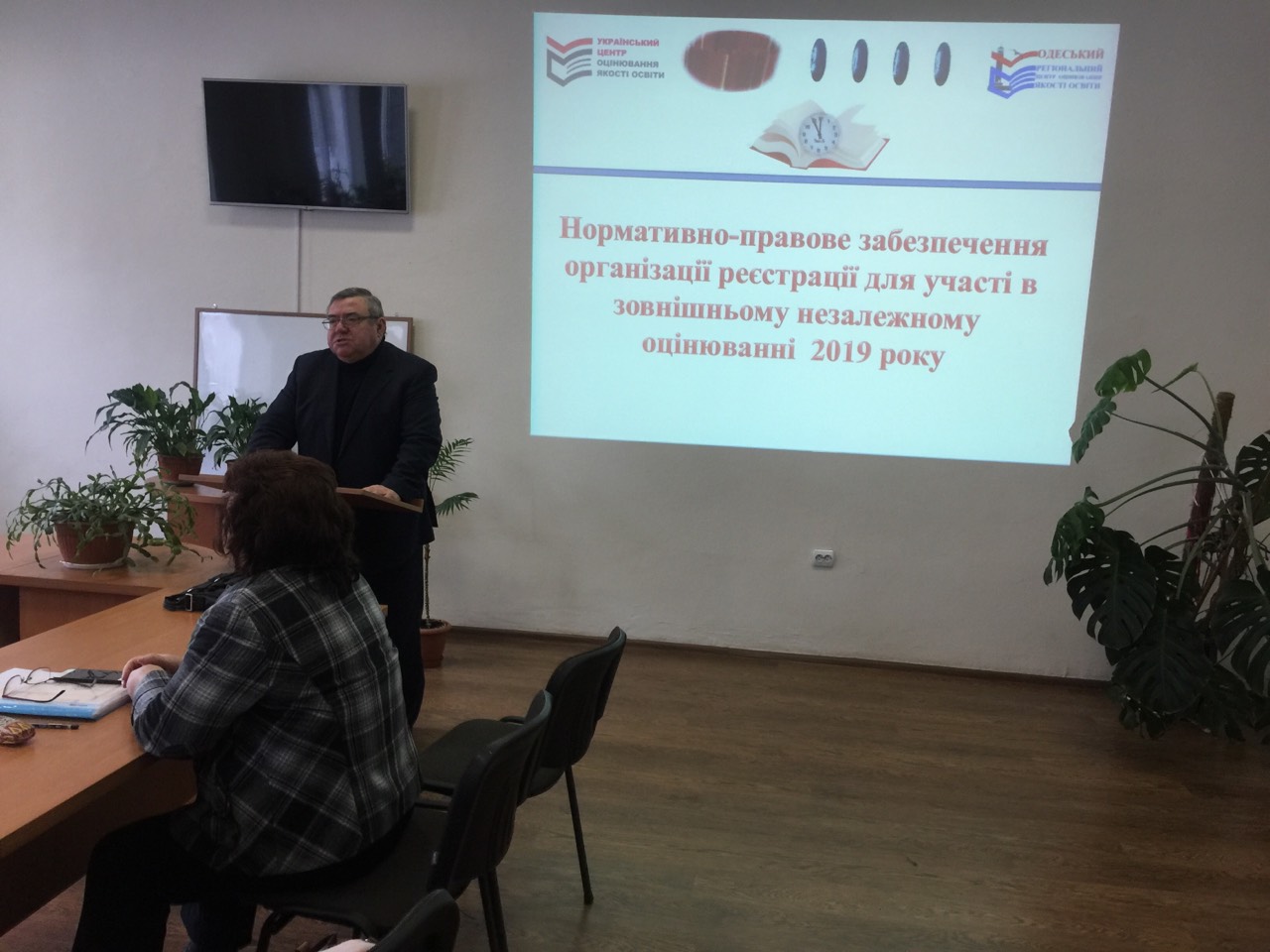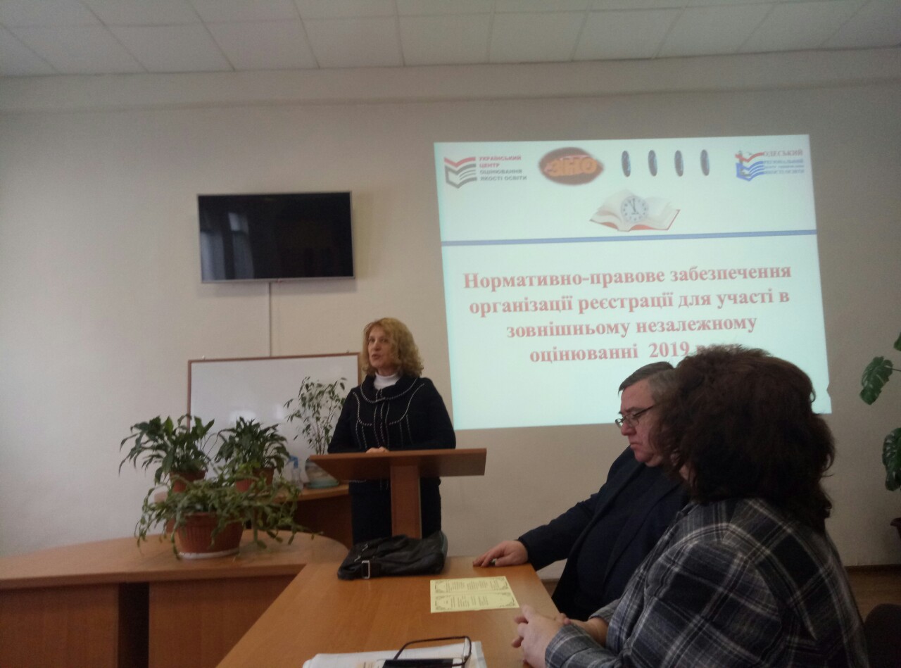 З метою ознайомлення відповідальних за формування комплектів реєстраційних документів з Нормативно-правовим забезпеченням організації реєстрації для участі в зовнішньому незалежному оцінюванні Навчально-методичний центр професійно-технічної освіти в Одеській області спільно з Департаментом освіти і науки Одеської обласної державної адміністрації та Одеським регіональним центром оцінювання якості освіти провели 28 січня 2019 року інструктивно-методичний семінар-нараду на тему «Особливості реєстрації для участі в ЗНО – 2019».