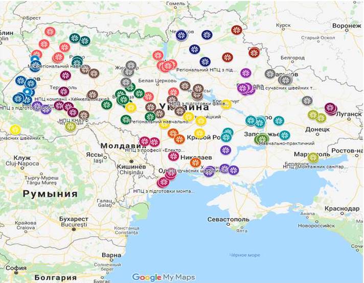 Інтерактивна карта навчально-практичних центрів професійної (професійно-технічної) освіти України