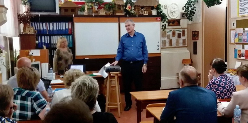 Шликов Д.В., викладач креслення ДНЗ «Одеський професійний ліцей морського транспорту», продемонстрував власний досвід у впровадженні електронних ресурсів у навчальний процес при підготовці кваліфікованих робітників. Присутні познайомились із сайтом викладача, його наповненням, бажаючі могли пройти тести на власному смартфоні. Були. презентовані розроблені ним робочі зошити з предмету «Основи технічного креслення».