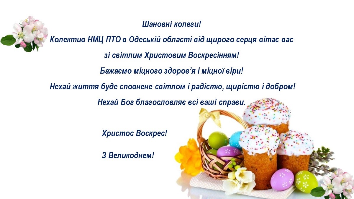 Колектив НМЦ ПТО в Одеській області вітає зі Світлим Христовим Воскресінням!
