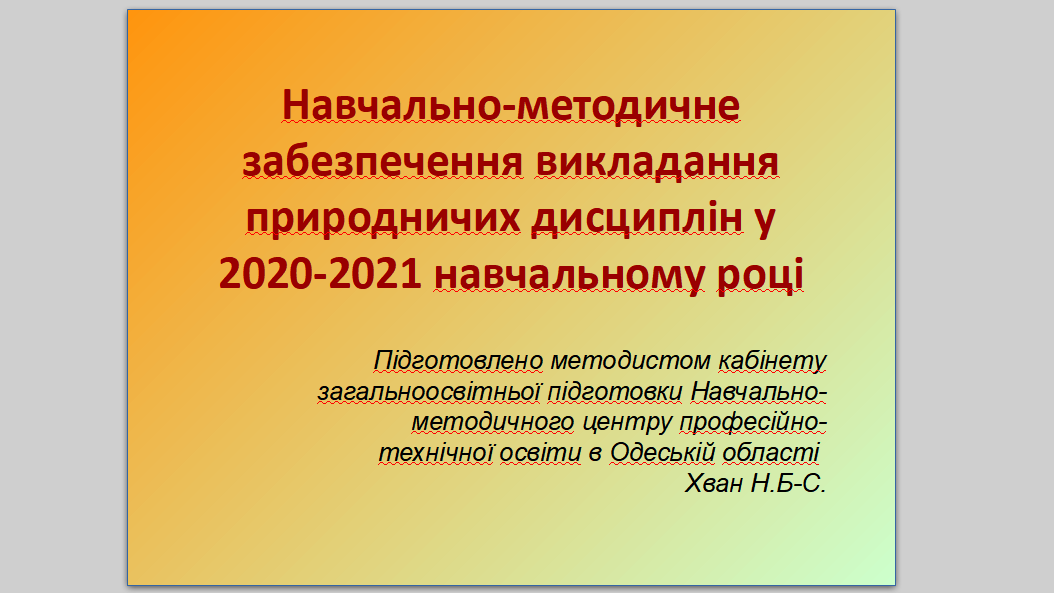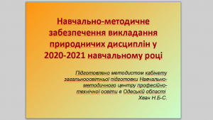 Під час засідання методист кабінету загальноосвітньої підготовки НМЦ ПТО в Одеській області Хван Н.Б-С. ознайомила викладачів з навчально-методичним забезпеченням викладання природничих дисциплін у 2020-2021 навчальному році в закладах професійної освіти.