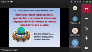 Засідання проводилось у формі онлайн-вебінару на тему: «Використання інноваційних і традиційних технологій навчання у ЗП(ПТ)О в умовах інформатизації освіти».