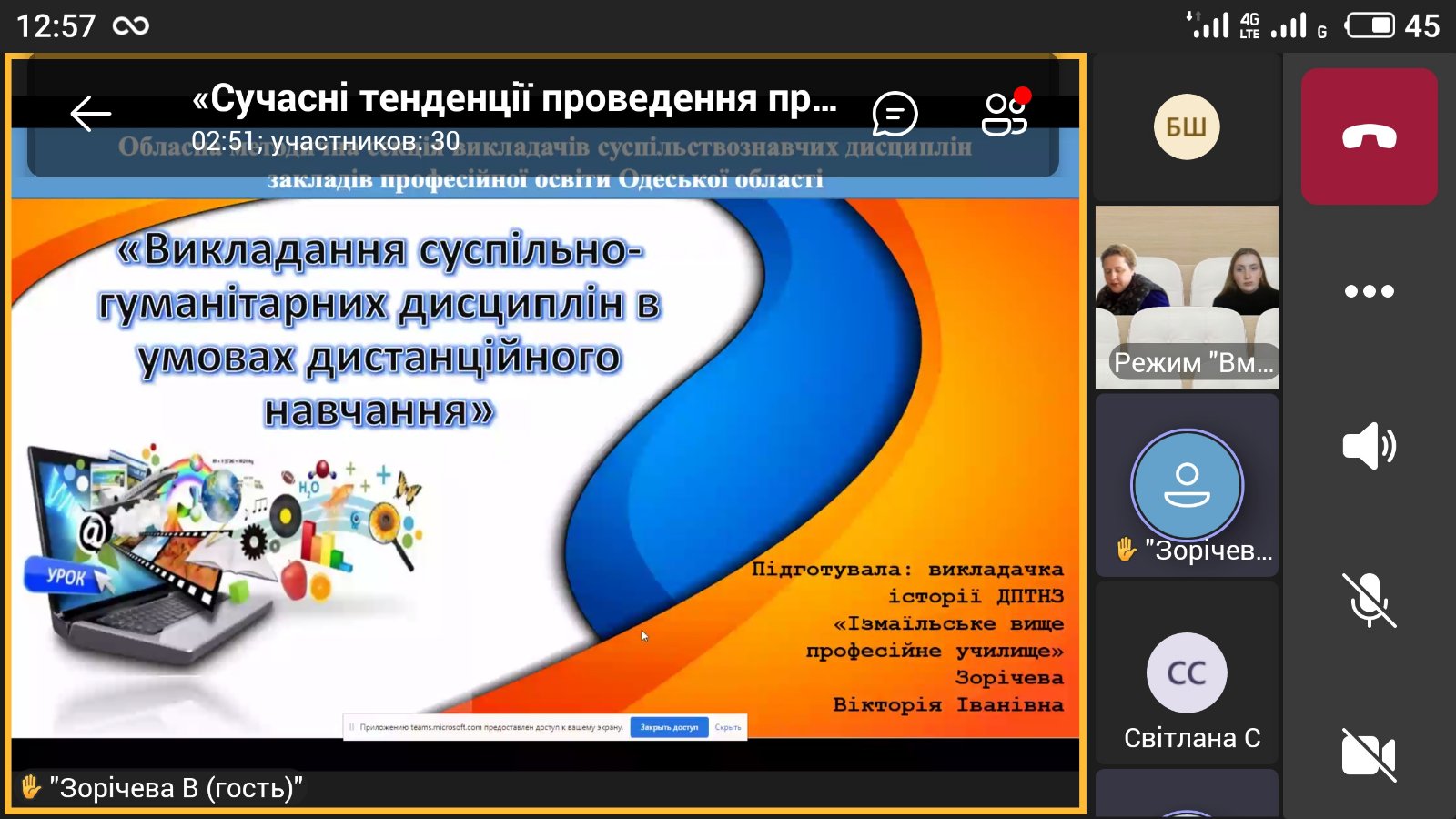 Зорічева Вікторія Іванівна– викладач історії ДПТНЗ «Ізмаїльське вище професійне училище» презентувала викладання суспільствознавчих дисциплін в умовах дистанційного навчання.