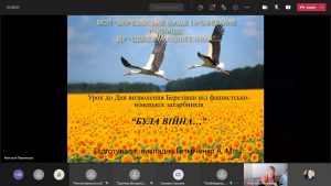Презентацію в поєднанні з відеоматеріалом «Урок – практикум до дня визволення Березівки від фашистсько-німецьких загарбників. Була війна…» представила Гетміченко Алла Миколаївна – викладач історії ВСП «Березіське вище професійне училище Державного університету «Одеська політехніка» .