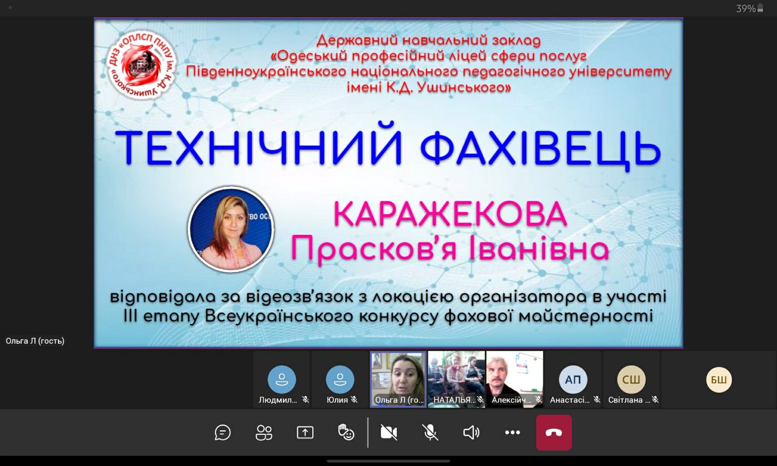 - Осадчук Ольга Олегівна та Каражекова Прасков`я Іванівна – майстри виробничого навчання ДНЗ «Одеський професійний ліцей сфери послуг Південноукраїнського національного педагогічного університету ім.К.Д.Ушинського». Тема їх доповіді: «Проведення III етапу конкурсу фахової майстерності з професії «Перукар» у сучасних умовах».