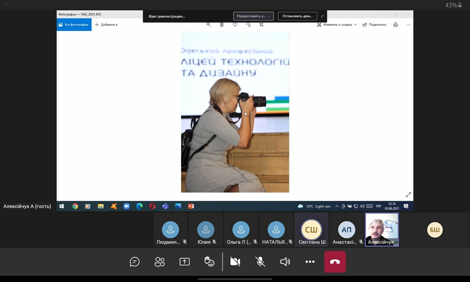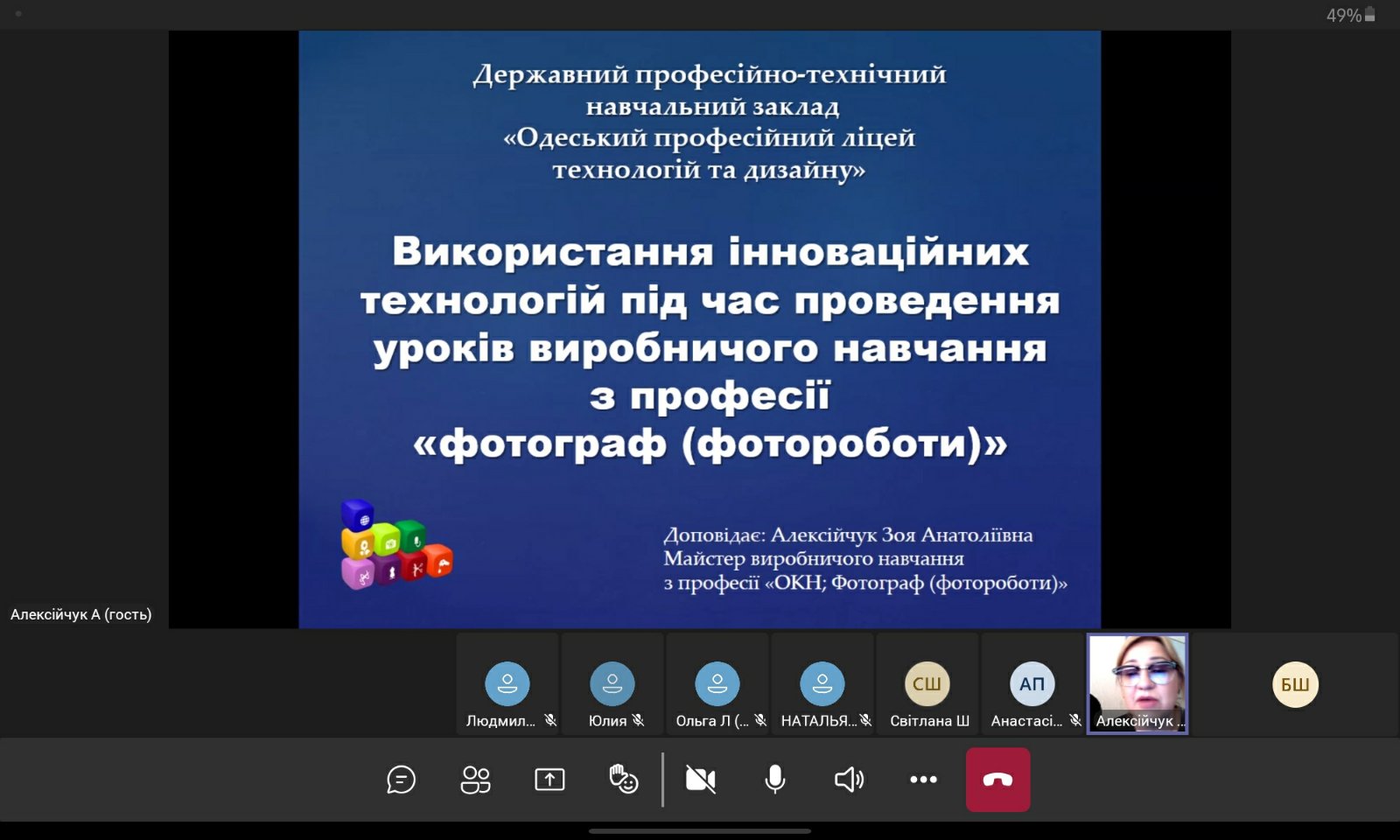 - Алексійчук Зоя Анатоліївна та Кришталь Володимир Григорович – майстри виробничого навчання з професії «Фотограф (фотороботи)» ДПТНЗ «Одеський професійний ліцей технологій та дизайну» з презентацією на тему: «Використання інноваційних технологій під час проведення уроків виробничого навчання з професії «Фотограф (фотороботи)»;