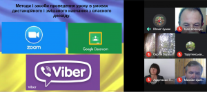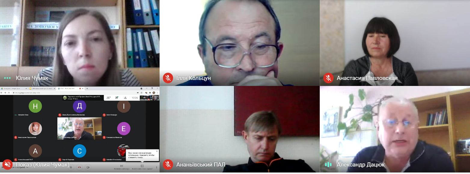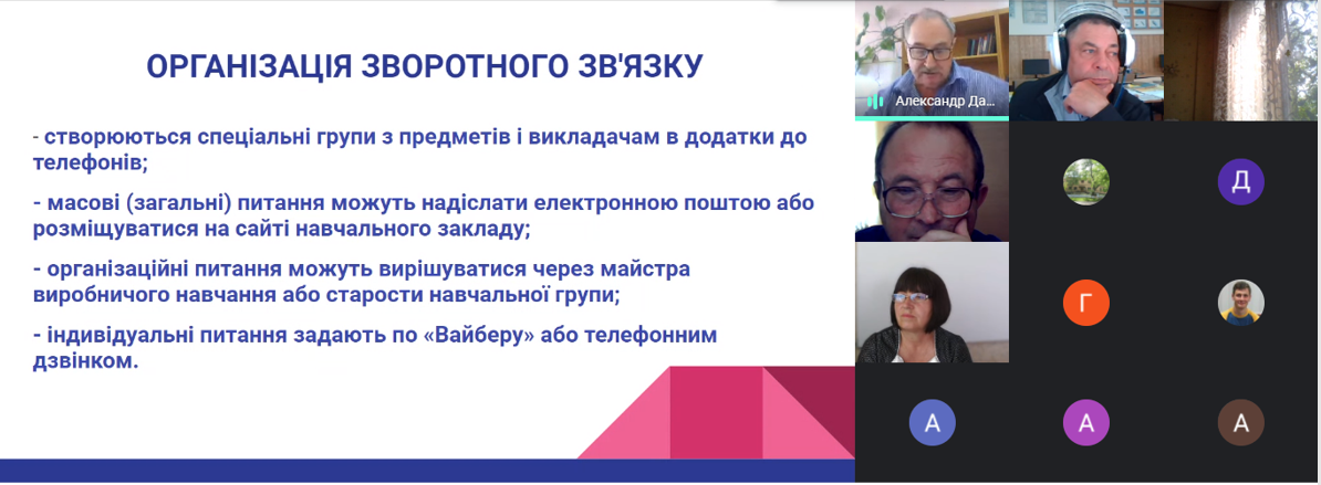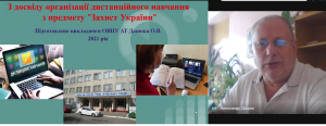 Так досвід організації дистанційного навчання з предмету «Захист України» презентував Дацюк Олександр Володимирович, ДНЗ «ОВПУАТ». Досвідом організації проведення контрольних форм та зворотнього зв’язку при дистанційному навчанні поділився Чаплигін Віктор Іванович, ДНЗ «ОВПУАТ».