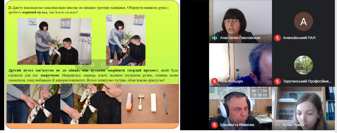 Чумак Юлія Дмитрівна, ДНЗ «АПАЛ», поділилась досвідом викладання розділу «Домедична допомога» з предмету «Захист України» в умовах дистанційного та змішаного навчання.