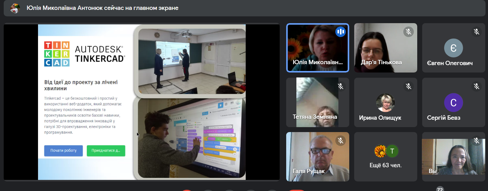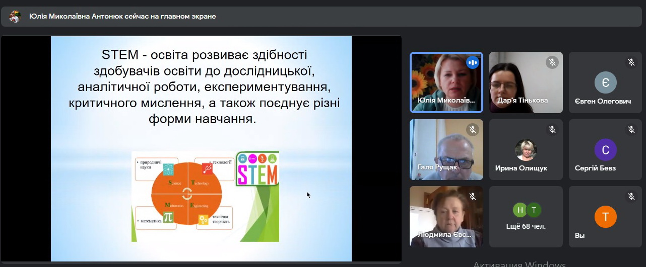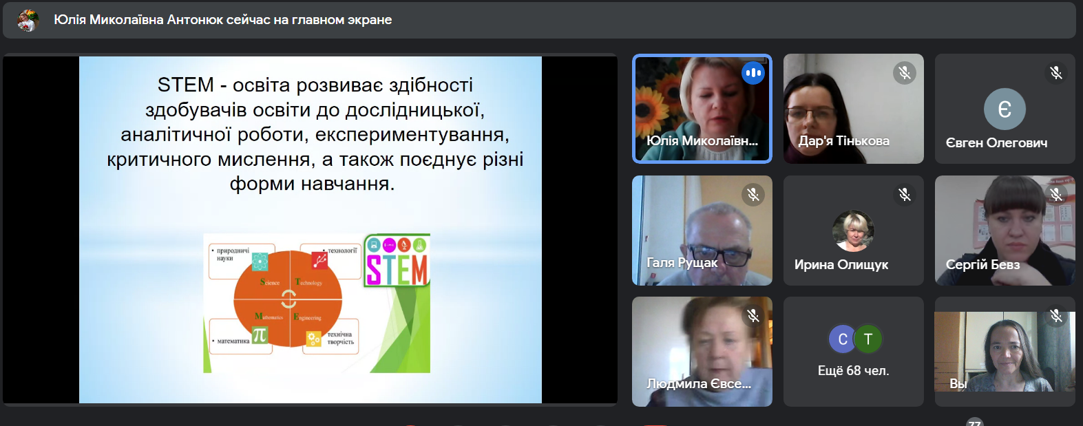 Юлія Миколаївна особливу увагу звернула на те, що використання сучасних мультимедійних та інтерактивних технологій дозволяють впроваджувати елементи STEM на уроках, а також при дистанційному навчанні.