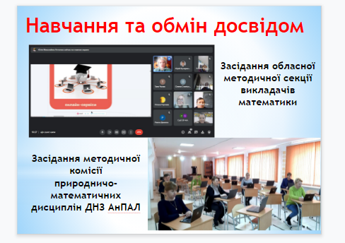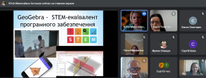 В своїй презентації викладач розповіла про застосунки, якими користується під час підготовки та проведення уроків: мобільний додаток 3D графіка GeoGebra, який дозволяє самостійно створювати перерізи та знаходити точки перетину та геометричні побудови в 3D, зберігати та ділитися своїми результатами, для урізноманітнення дистанційного навчання, чудово підійде Quizizz, для актуалізації або рефлексій знань найбільше подобається використовувати онлайн сервіс Мentimeter, за допомогою якого можна провести опитування, голосування або вікторину. Для виконання проектів використовує програму Tinkercad – це безкоштовна колекція програмних онлайн-ресурсів яка є лідером у сфері програмного забезпечення для 3D проектування, розробки анімації і графіки.
