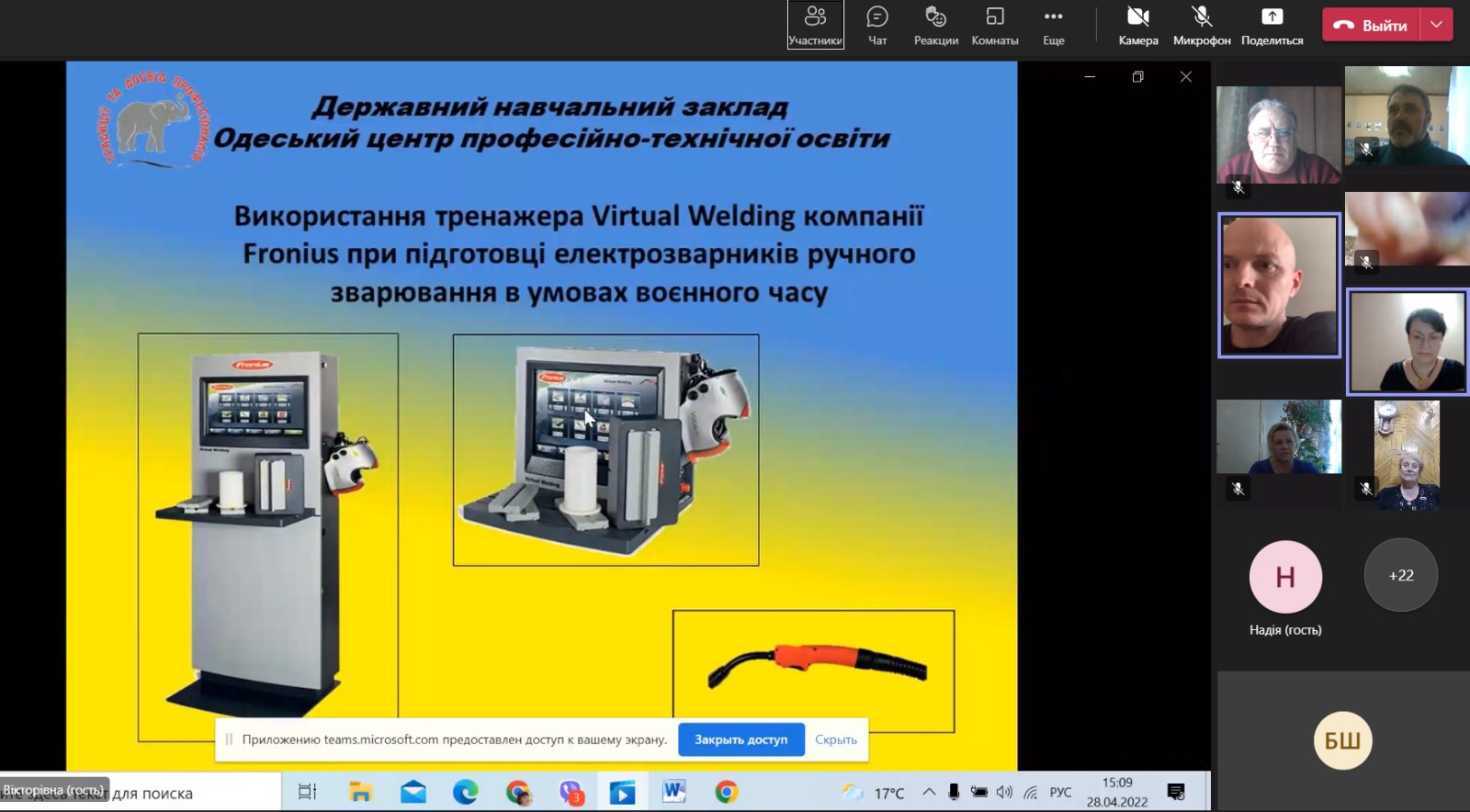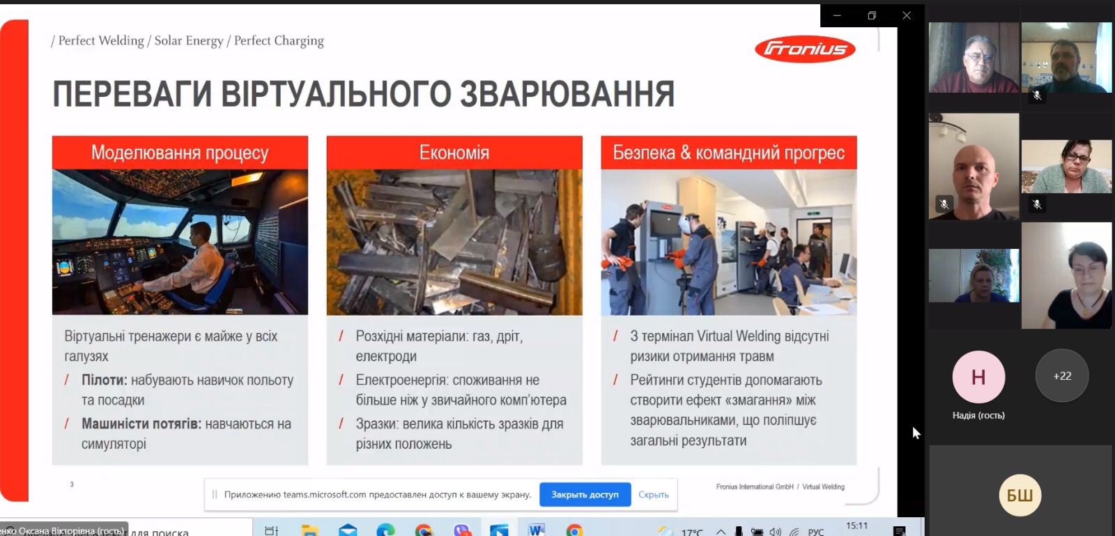 Викладач комп’ютерних технологій ДНЗ «Одеський центр професійно-технічної освіти» Вдовиченко Оксана Вікторівна представила презентацію щодо використання тренажера Virtual Welding компанії Fronius при підготовці електрозварників ручного зварювання в умовах воєнного часу.