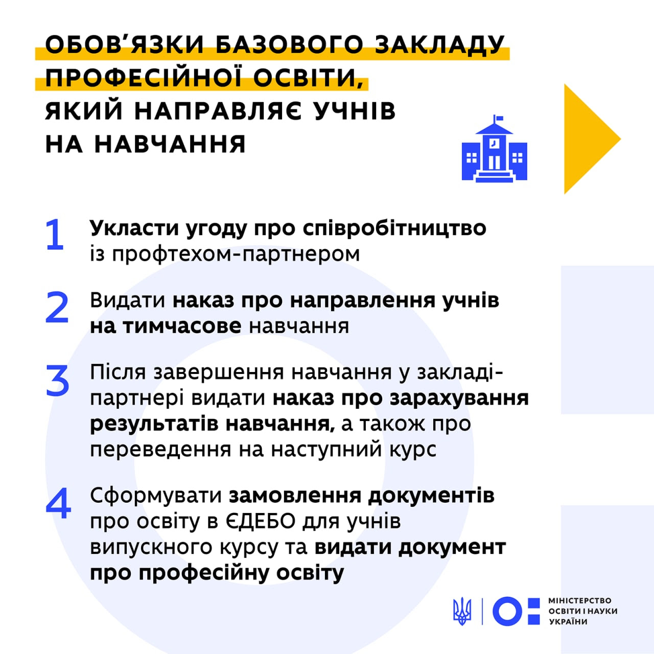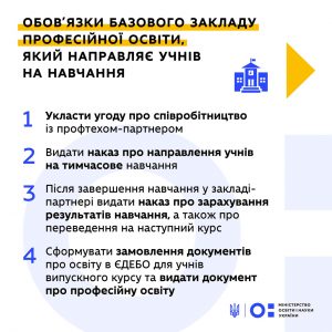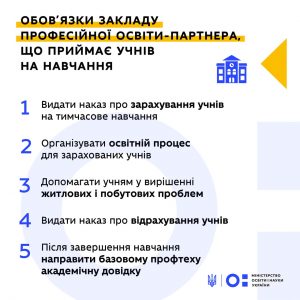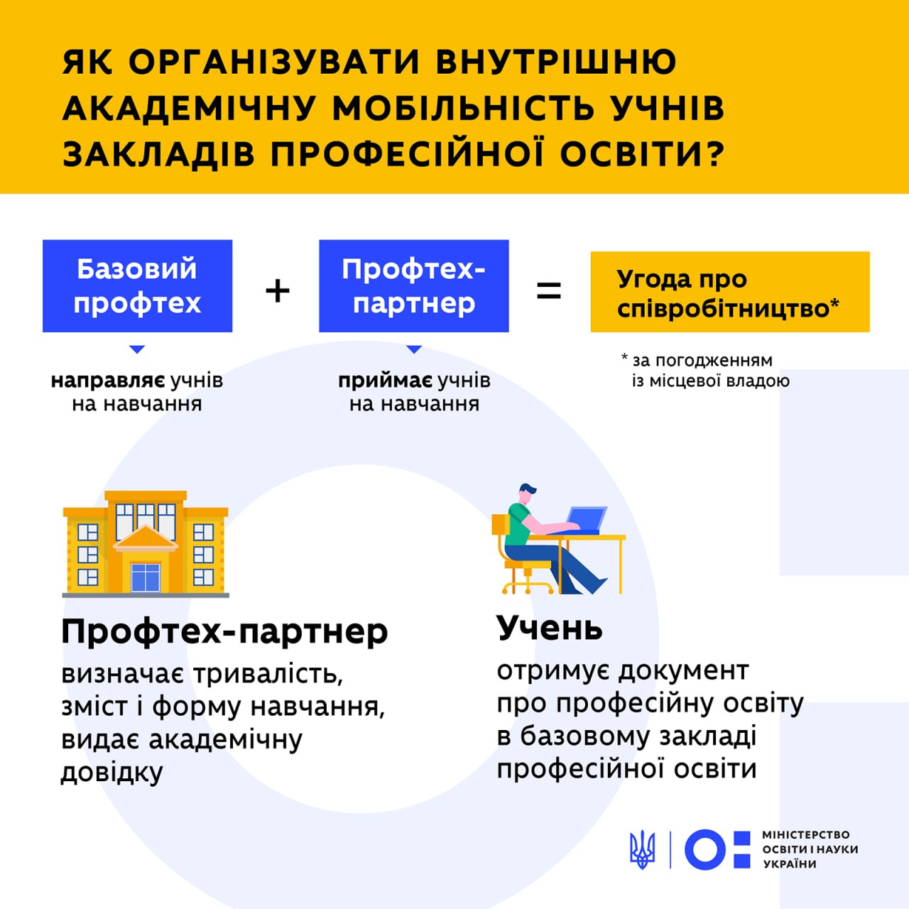 Міністерство освіти і науки затвердило правила внутрішньої академічної мобільності учнів закладів професійної освіти під час воєнного стану, відповідний наказ заюстовано 20 квітня 2022 року за №437/37773.