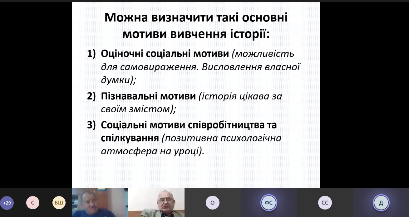 З виступу Лопакова Володимира Сергійовича, голови обласної методичної секції викладачів суспільствознавчих дисциплін, викладача історії, громадянської освіти, ДНЗ «Одеський професійний ліцей сфери послуг Південноукраїнського національного педагогічного університету ім. К.Д.Ушинського», викладачі дізнались про можливе створення позитивної мотивації в процесі вивчення історії;