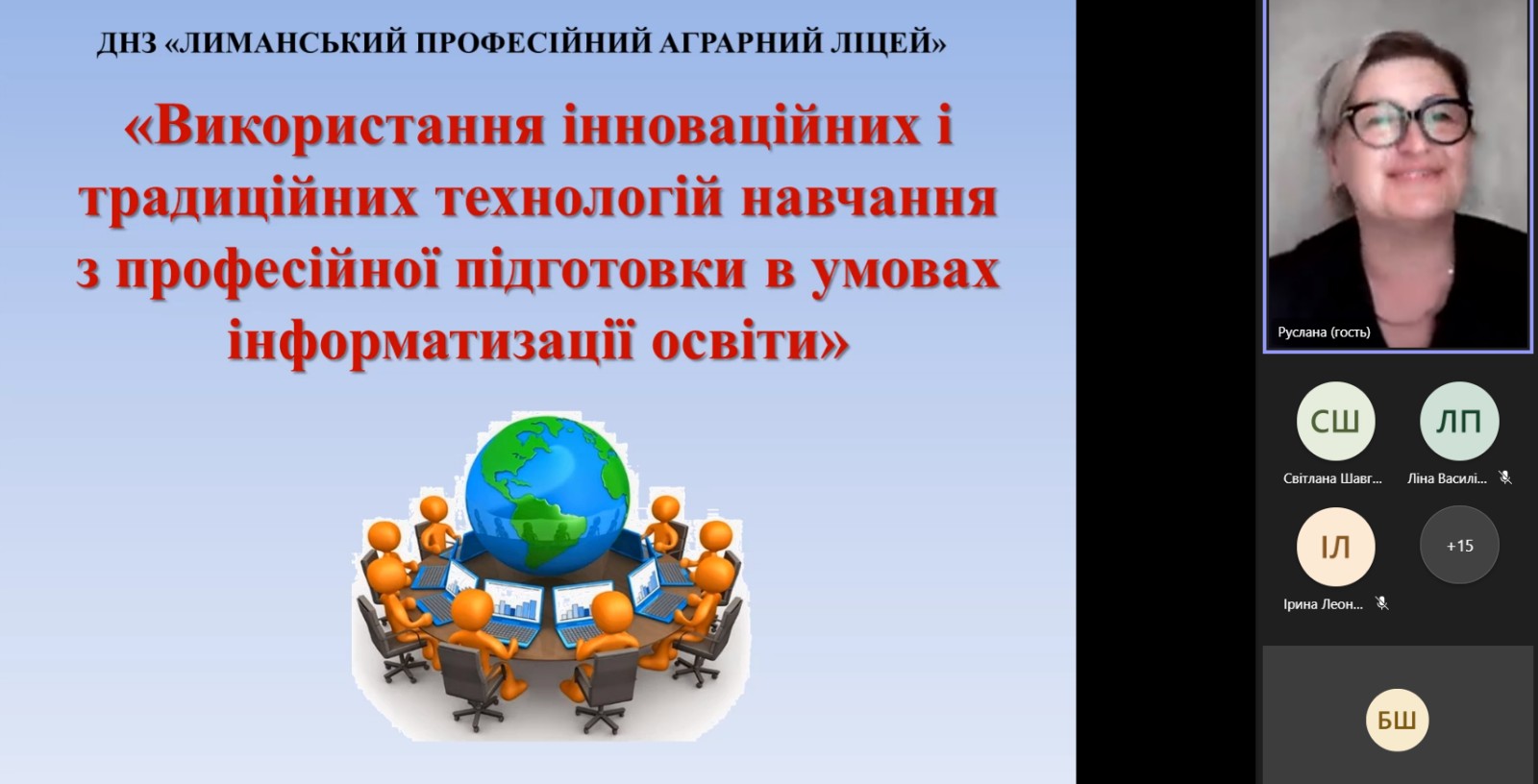 - Атік Руслана Василівна – майстер виробничого навчання з професії «Оператор з обробки інформації та програмного забезпечення», викладач спецдисциплін ДНЗ «Лиманський професійний аграрний ліцей» з доповіддю на тему: Використання інноваційних і традиційних технологій навчання з професійної підготовки в умовах інформатизації освіти».