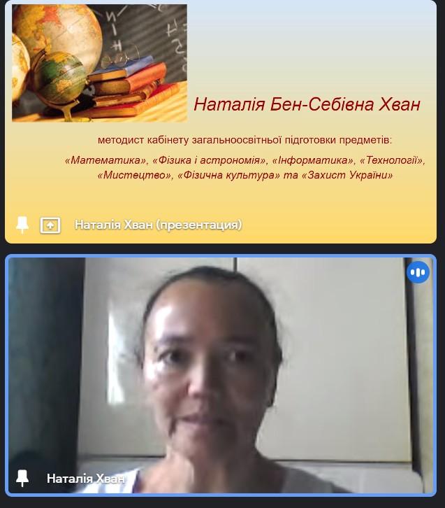 - Методичні рекомендації викладання предметів природничо- математичного циклу в ЗП(ПТ)О у 2022-2023 навчальному році. Доповідач Хван Наталія Бен-Себівна, методистка кабінету загальноосвітньої підготовки НМЦ ПТО в Одеській області.