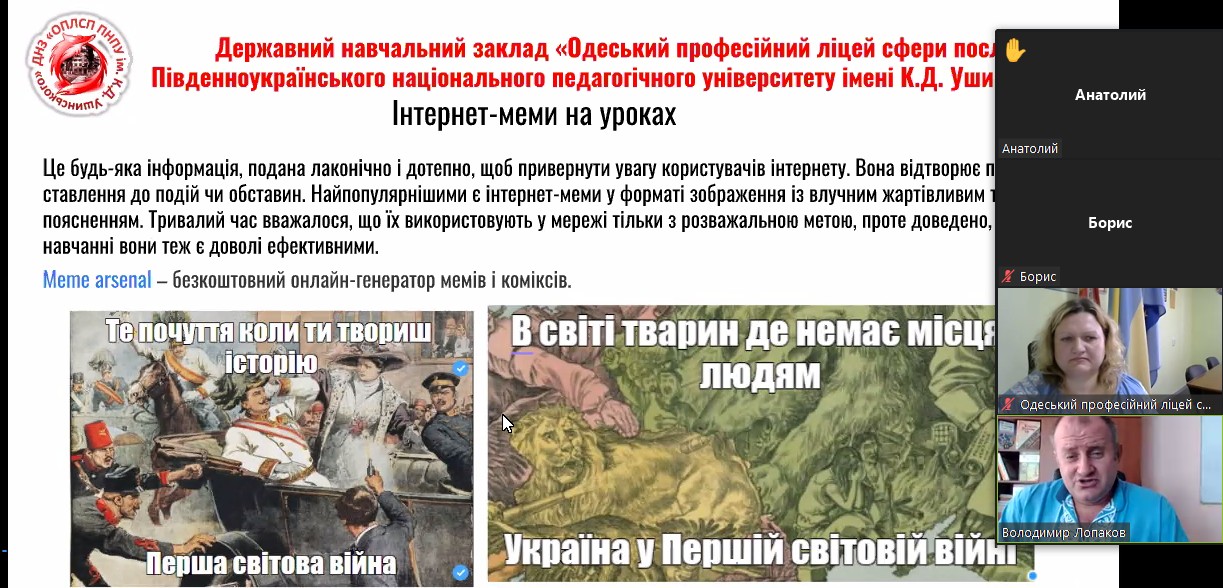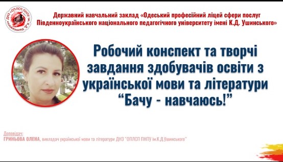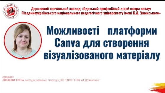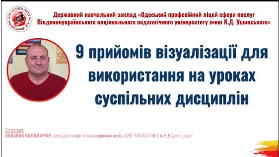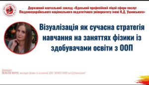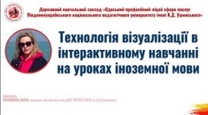 22 вересня 2022 року Навчально-методичним центром професійно-технічної освіти в Одеській області спільно з ДНЗ «Одеський професійний ліцей сфери послуг Південноукраїнського національного педагогічного університету імені К. Д. Ушинського» проводено вебінар для викладачів предметів загальноосвітньої підготовки закладів професійної (професійно-технічної) освіти на тему: «Візуалізація на уроках загальноосвітніх дисциплін у закладах професійної (професійно-технічної) освіти».